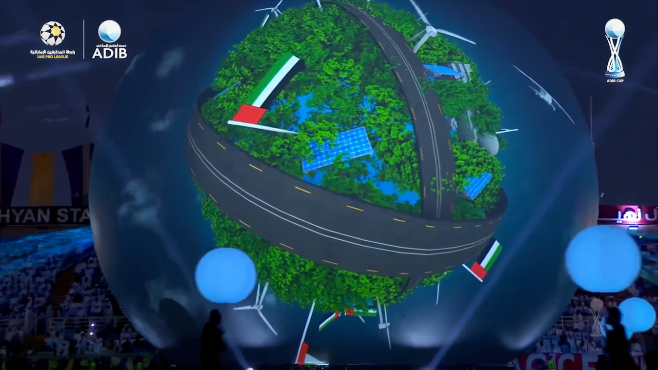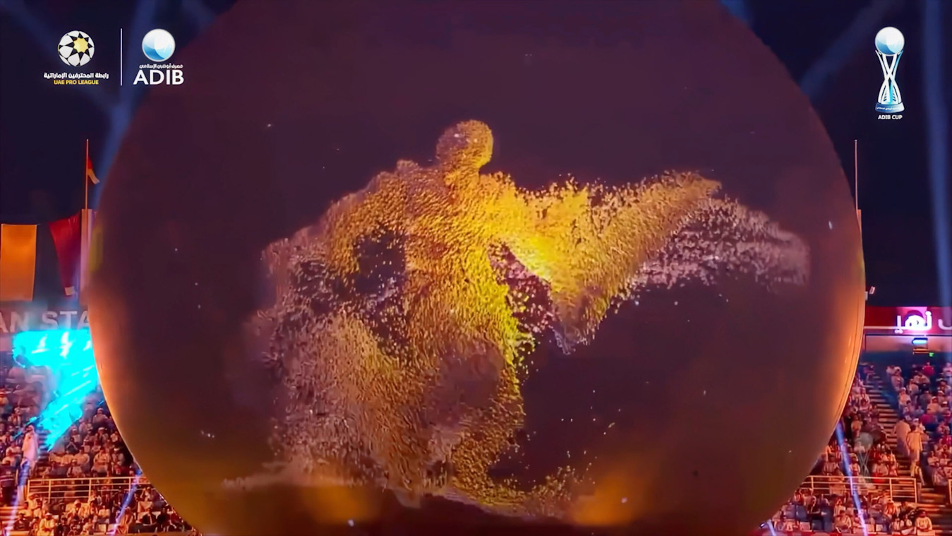 For this year’s ADIB Cup Final, INFRAMES were given the unique request to fill the floor of the opening ceremony with the most attractive content possible. After the creative team quickly found that it wasn’t technically possible to project on the floor of the field, they decided to opt for full-sphere projection to allow the audience to see the show up close.