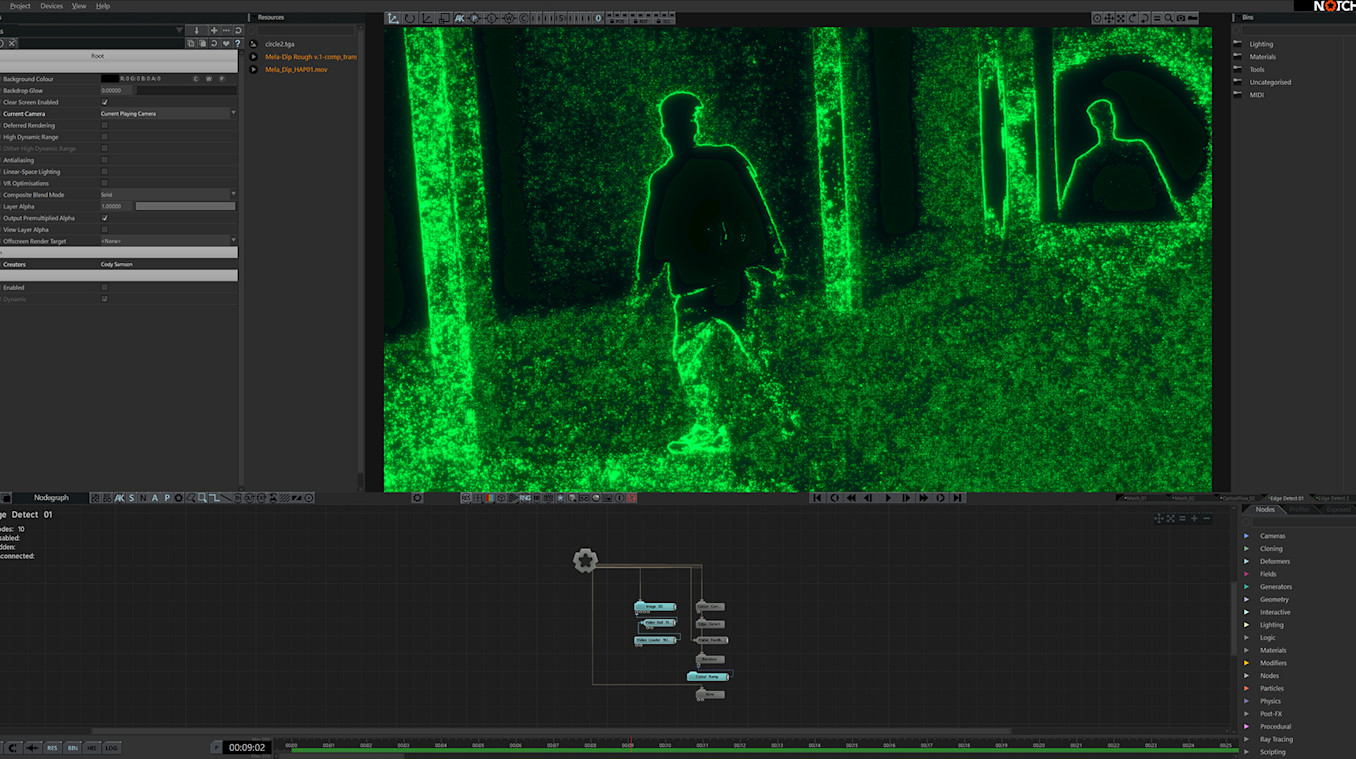 Cody: “Dylan and I have worked together on a handful of projects over the past years, so we understand and respect each other’s visual language. We’re both big fans of layered and processed video. He’ll come to me with an edit, and I’ll take it into Notch to see what effects I can come up with.”
