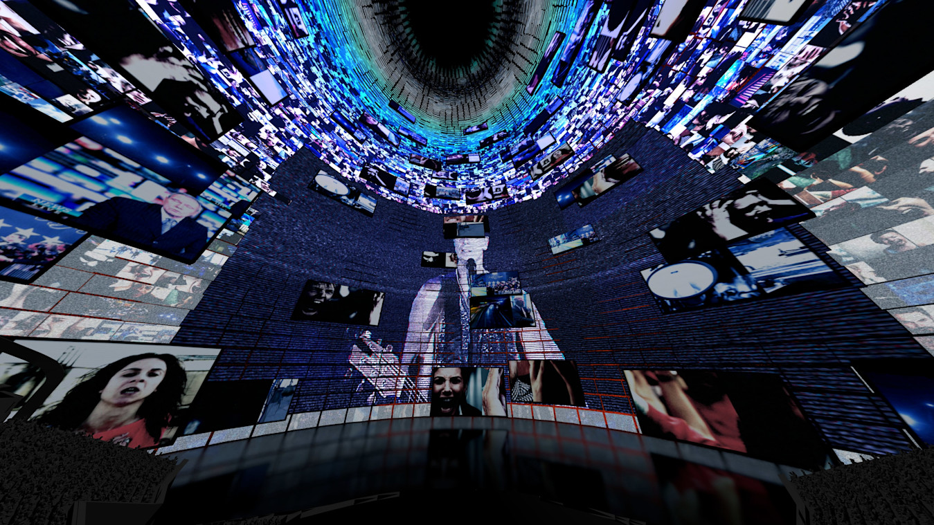 Rather than simply creating one feed of material, the Comix team decided to uniquely programme each individual screen, drawing focus, variously, to certain patterns and animations that affected the space on both macro and micro levels. They were willing to do whatever it took to make the show as immersive as possible.