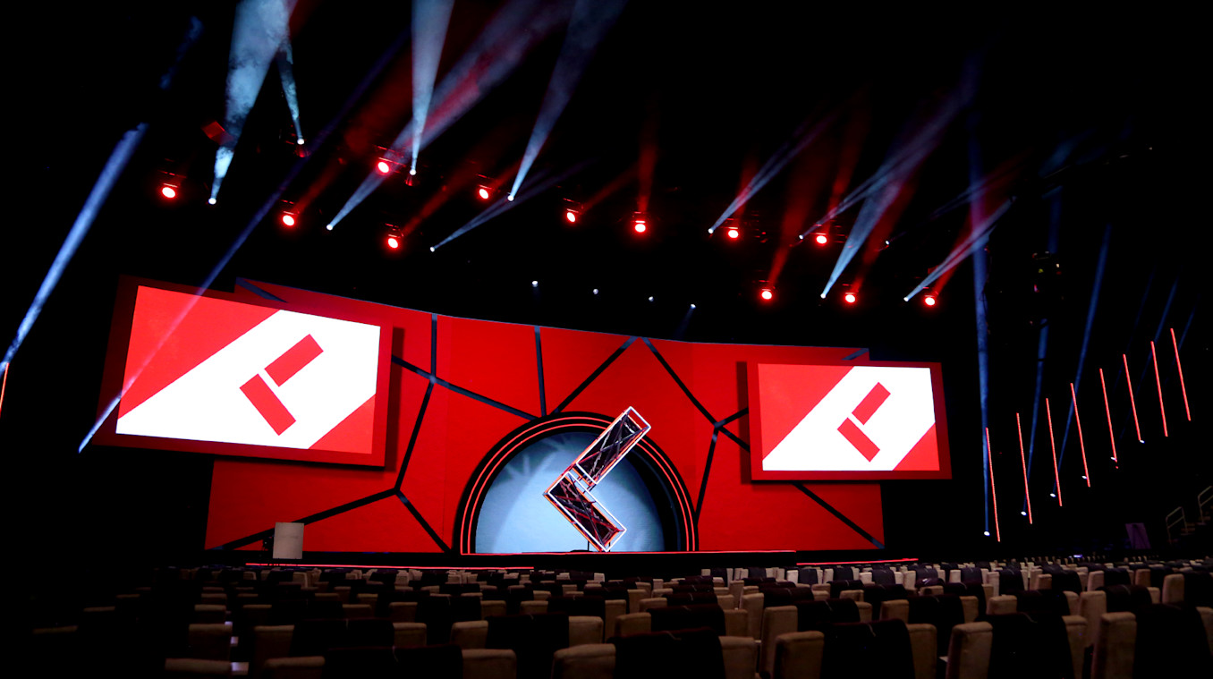 The team were briefed to create a suite of stage looks and designs which would mark each speaker session. They would be designing content for a 27.43 m x 6.92 m LED wall with two LED wings on either side. “We wanted to take this very flat surface and bring three-dimensionality to it through the content.” Sarah’s design, influenced by the event branding, featured assembling paper shards: “We decided to create our content in line with this aesthetic and began to brainstorm how we could take the concept of paper shards and bring them to life on the set in a dynamic, three-dimensional way.”