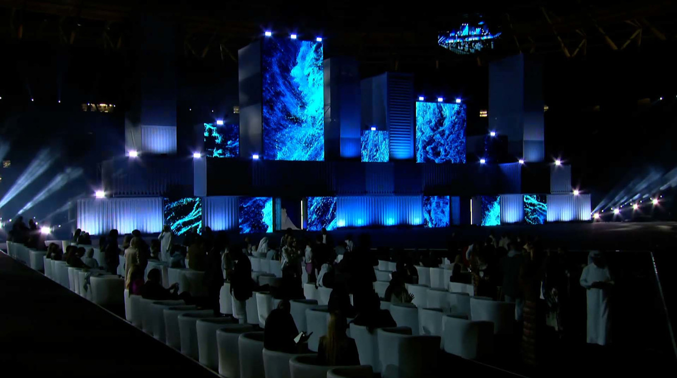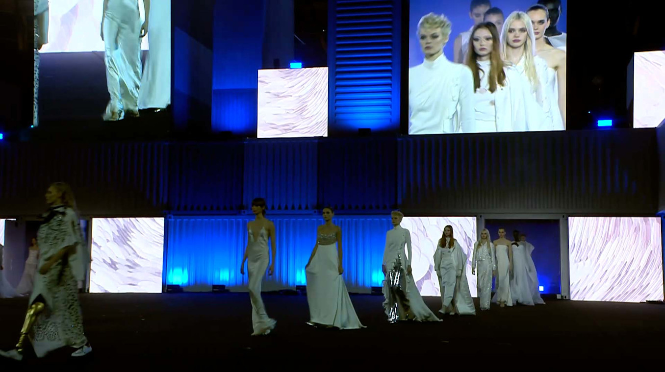 LEAP Creative Studio, who headed up scenography and motion, approached INFRAMES to contribute animated visuals, most of which were primarily created in Notch. They asked Notch Designer Haitham Taha to produce something that would suit the clean, elegant, and sophisticated designs on display. Together, the studios began by developing storyboards and colour treatments, beginning the show with sharp, detailed textures resembling choice fabrics which became, as the show went on, more abstract particles that electrified the stage.