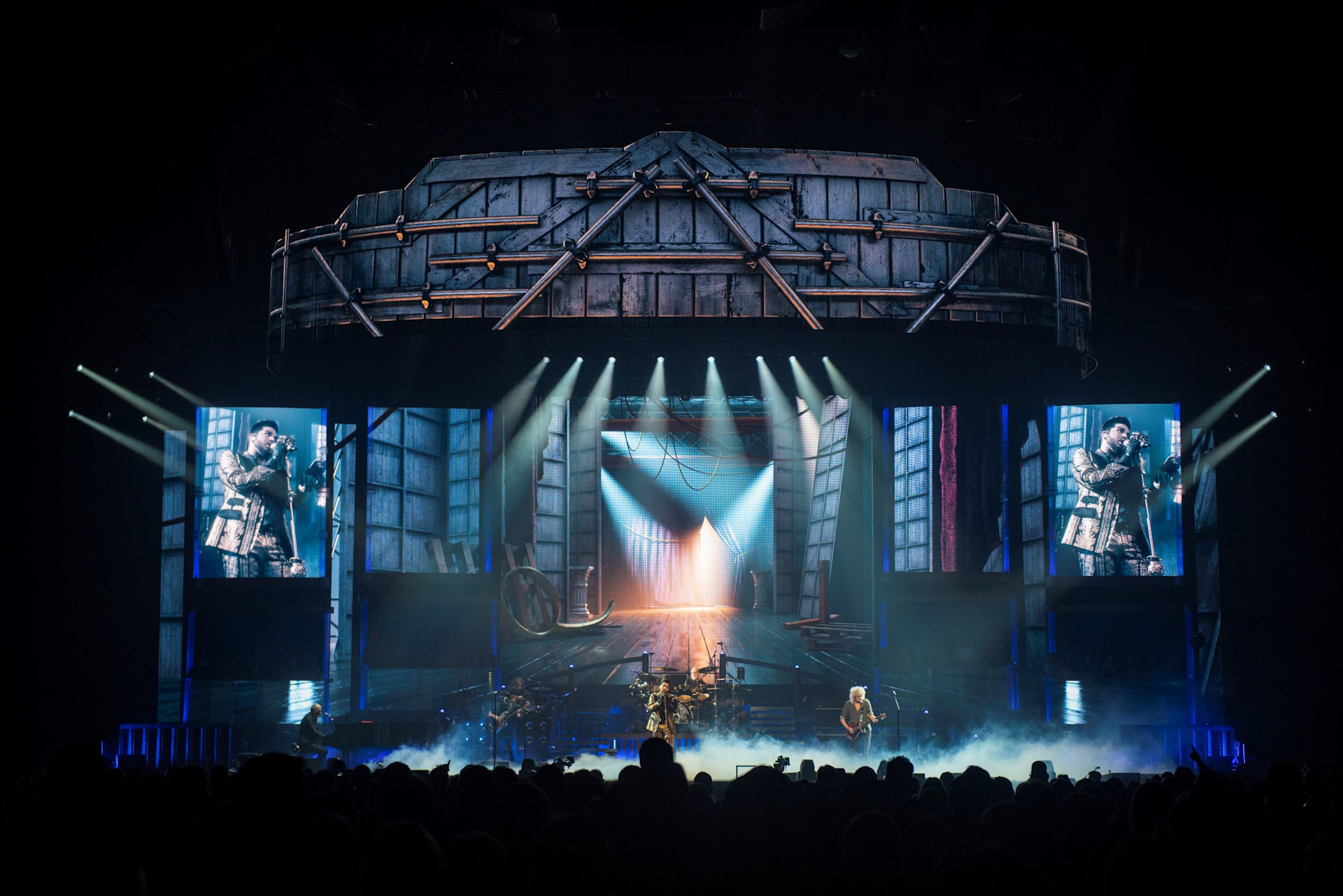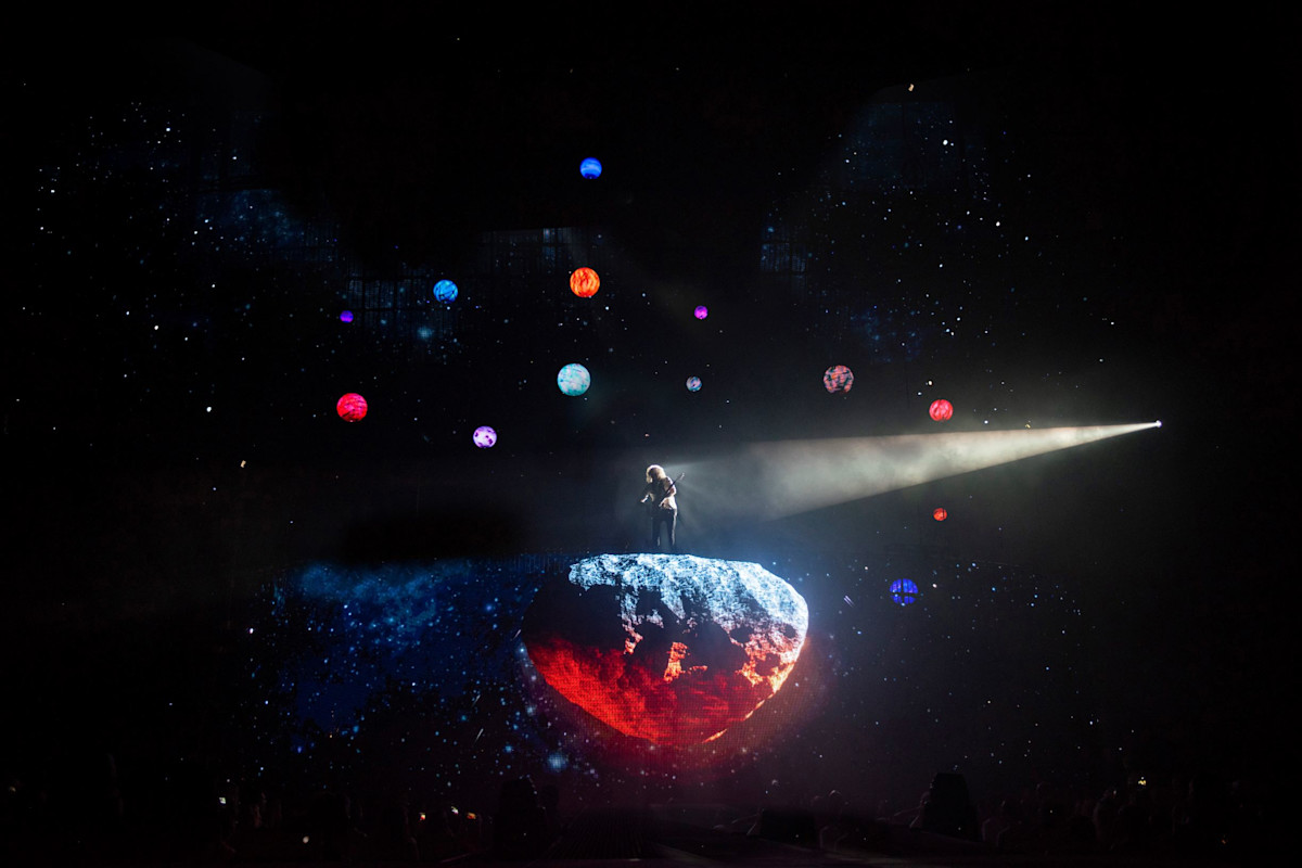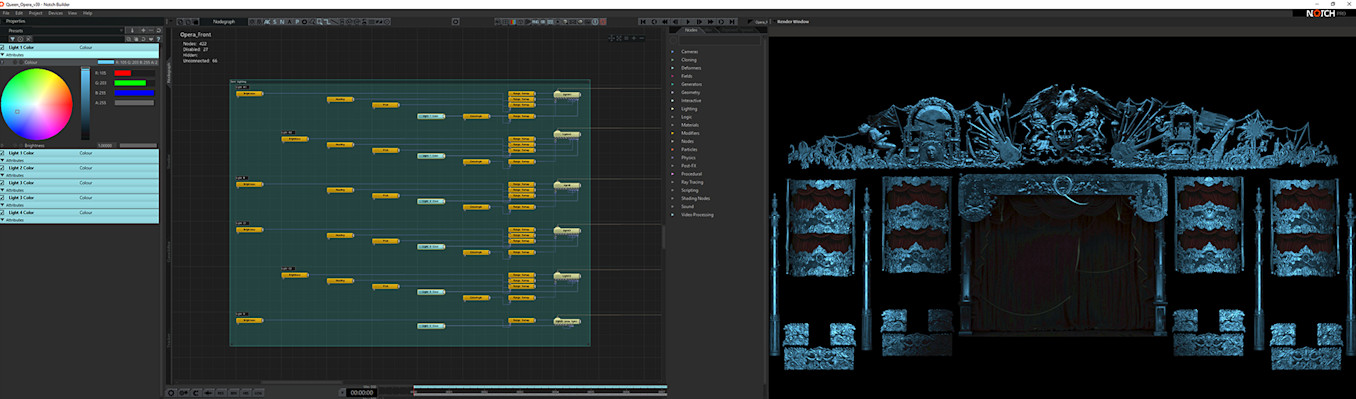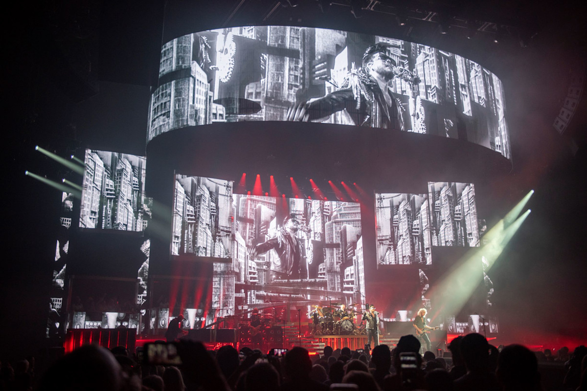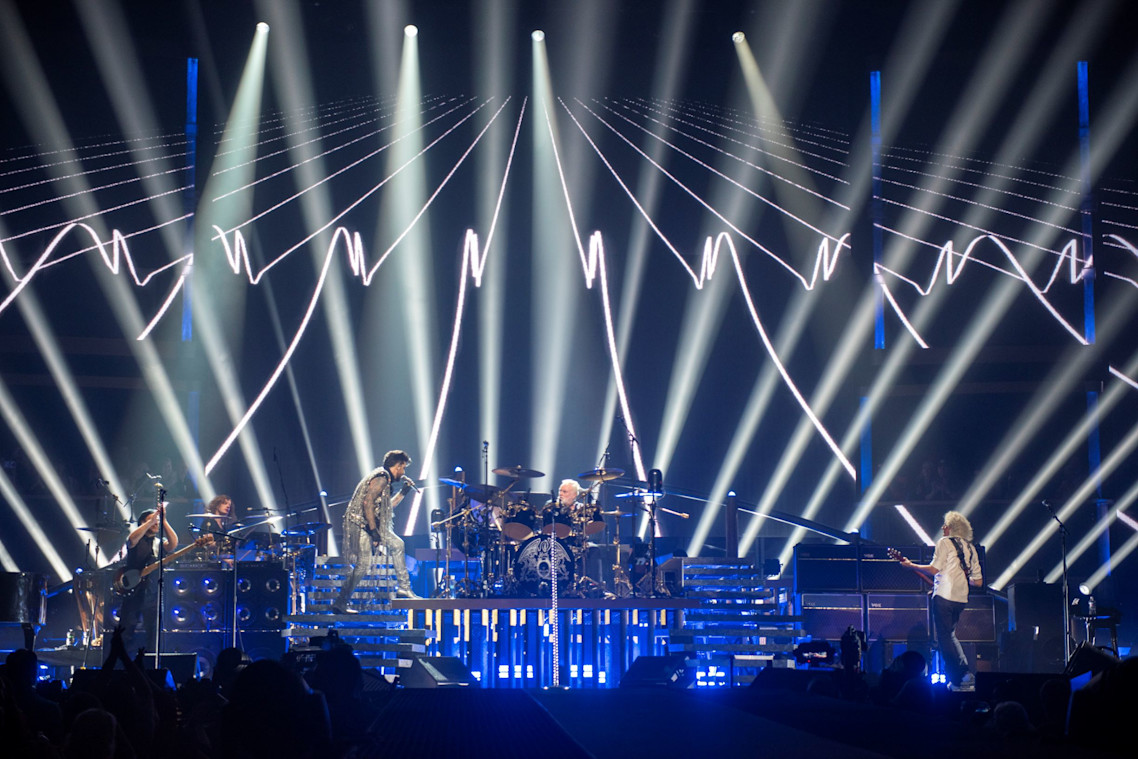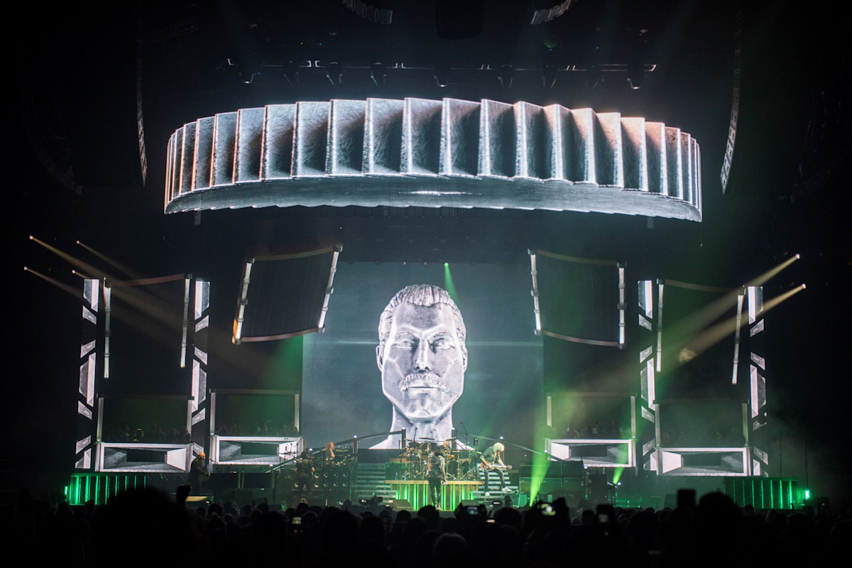 Giles: “We set out was to create a show in three distinct acts. Each act covers a different era from Queen’s history: A Night at The Opera, The Works, and a contemporary rock show with nods to classic Queen shows. Instead of a static backdrop, we envisaged a dynamic 3D environment which could react to the music and work seamlessly with Rob Sinclair’s lighting, and Ric Lipson’s set-design.”