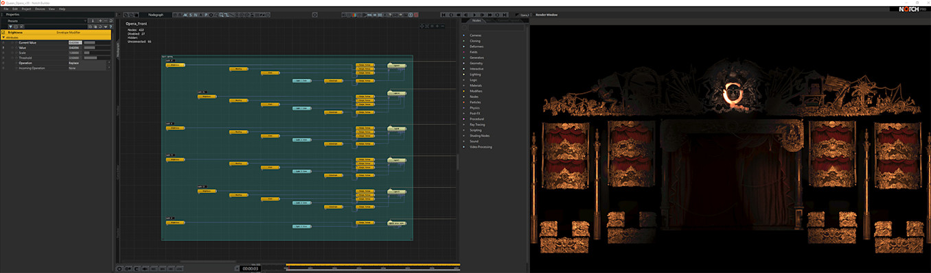 Treatment, working with designer Brett Bolton, created the spectacular 3D set in Notch. This full production seamlessly combines physical and digital scenery through brilliant use of virtual lighting. Producer Giles Maunsell and Designer Brett Bolton describe their creative process:
