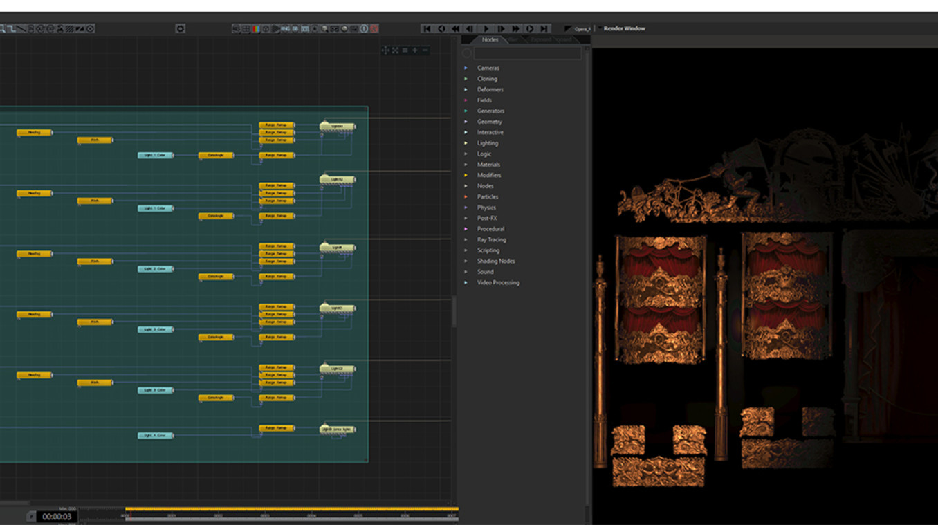 “We wanted the video and lighting teams to have control over certain 3D elements within each scene so that during the live performances, they could react to the energy of the music. At this point, we did not know what was possible within Notch. However, we knew we wanted to use dynamic virtual lighting to blur the lines between the physical and the digital set design. Incorporating a combination of rendered and live video into our 3D set design was integral to our vision, so we set about making it happen.”
