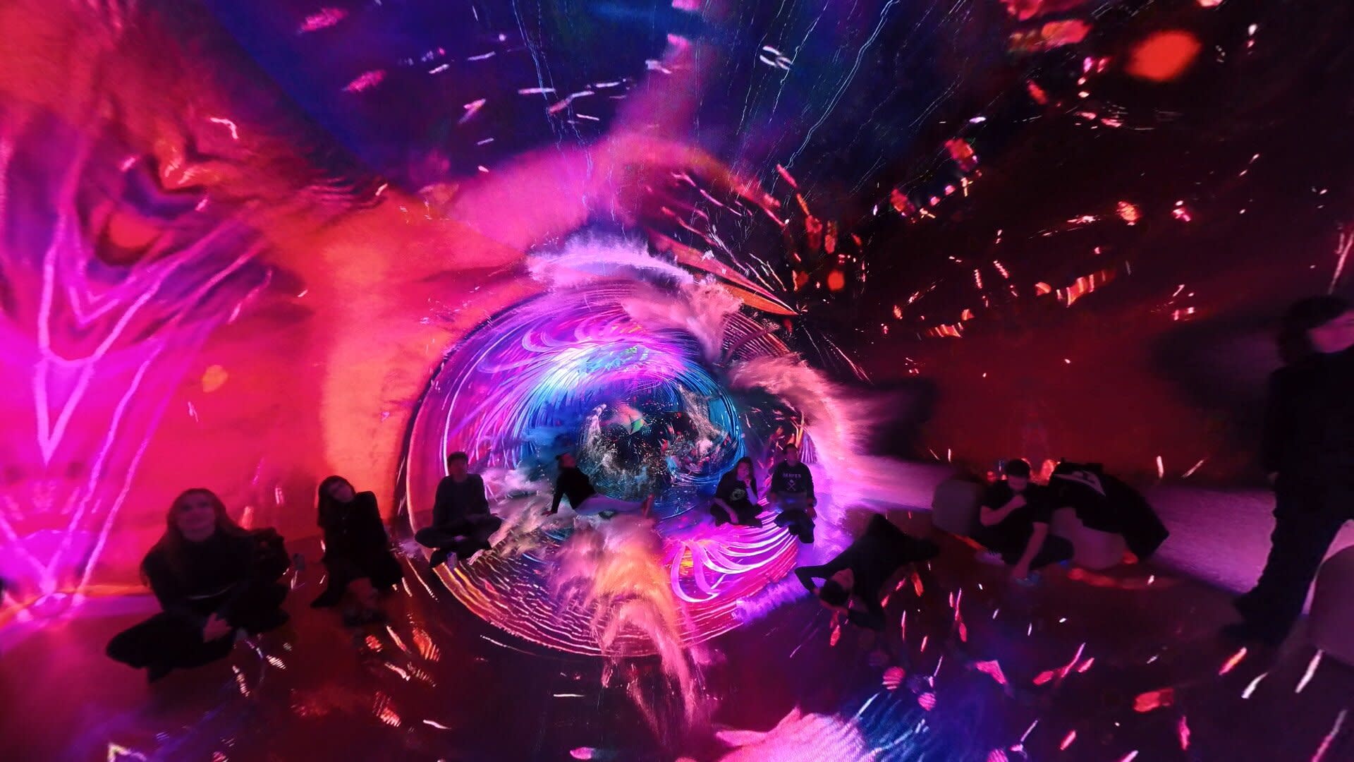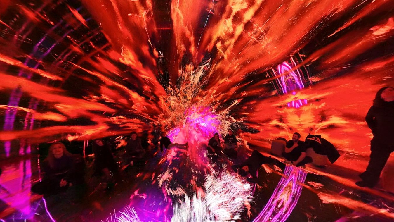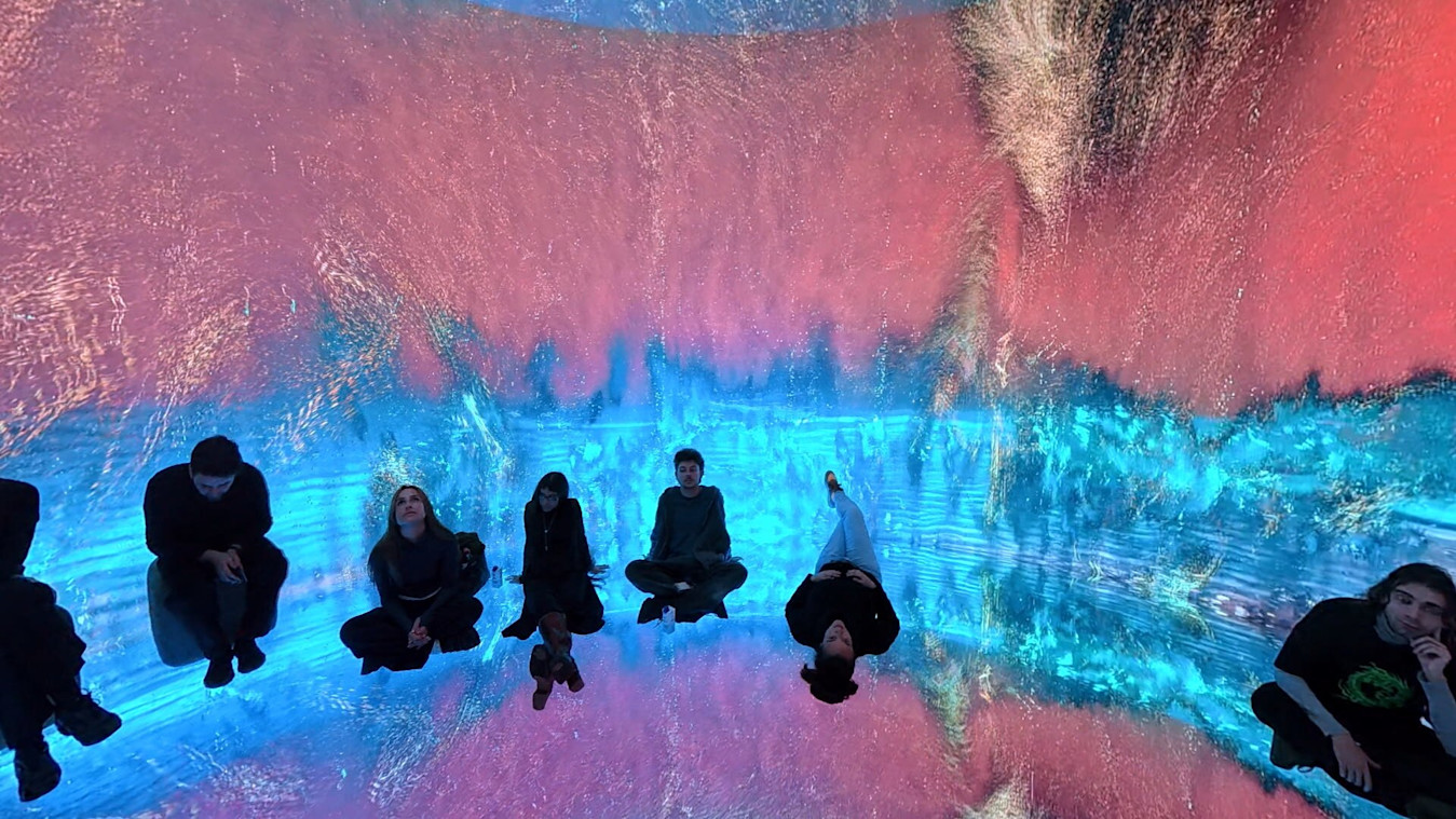 Desilence took the ocean itself as their guiding light, envisaging it as the perfect metaphor for immersion. They brought a workstation and began experimenting directly in the space, exploring how the fulldome and mapping versions of the project could work in a cylindrical format. The piece evolved through hands-on testing, letting the architecture and immersive conditions of the Vortex guide the work’s transformation.