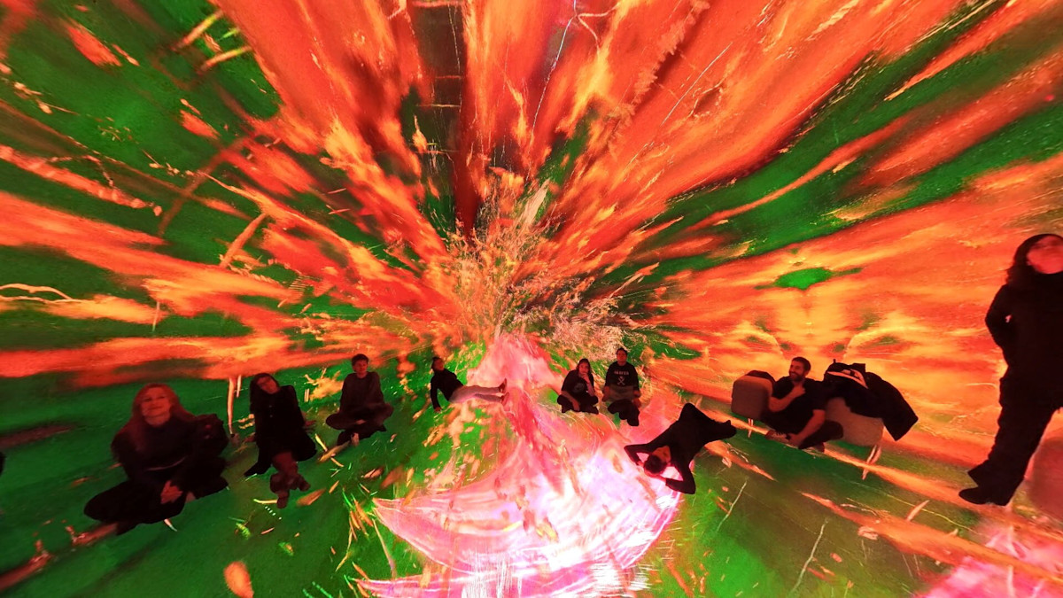 Curator Antonia Folguera commissioned Barcelona-based studio Desilence to adapt their existing work, The Rhythm of the Ocean, to Bellver Blue Tech Zone’s Vortex—a 360-degree immersive space encased in LED screens and measuring 7x4.5 metres. As Desilence explains, “It’s the closest feeling to VR without a headset.” The work, a visual collaboration with synth pioneer Suzanne Ciani and her iconic soundscapes, proved tailor-made for the Vortex environment.