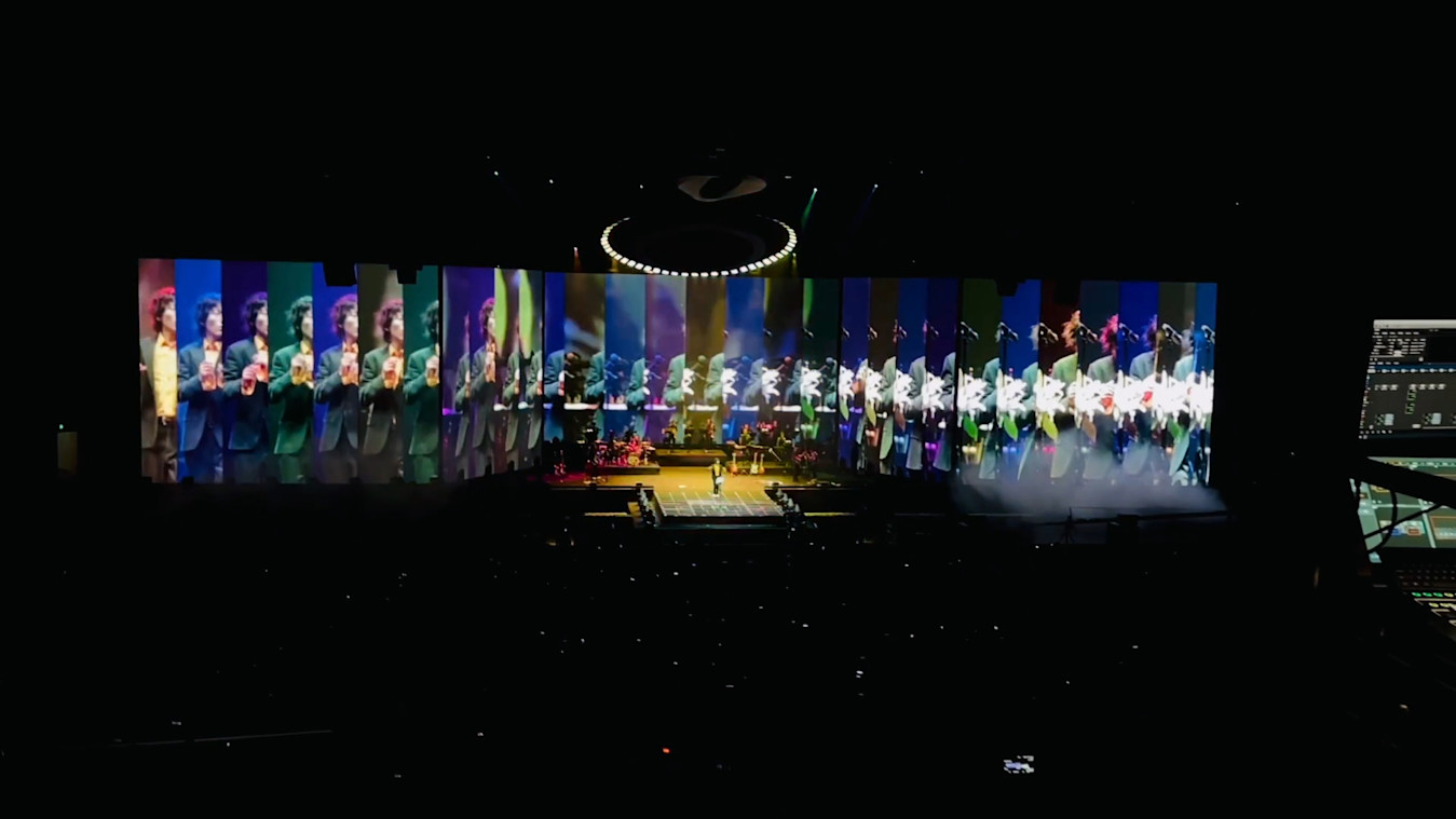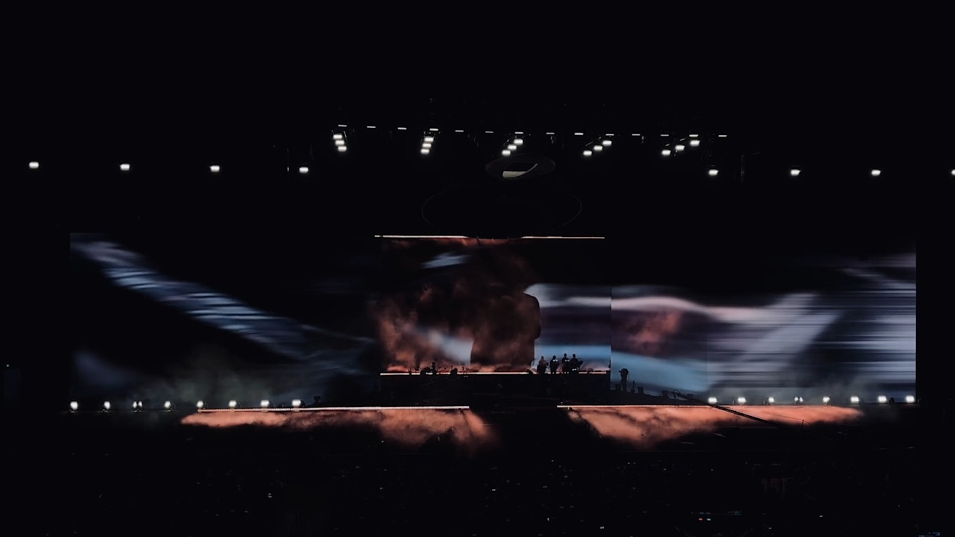 The musicians, lighting crew, and video team came together to plan each individual song as precisely as possible. Because it was a one-off show, the team knew they could be exacting and decided to use Notch in tandem with Arena, creating endless combinations of live effects and pre-made videos, reworking and remixing to taste.