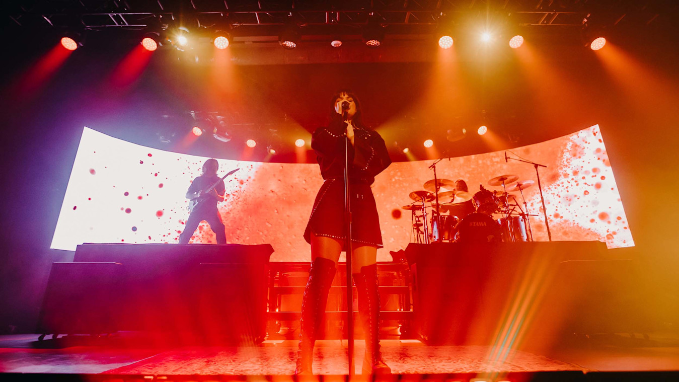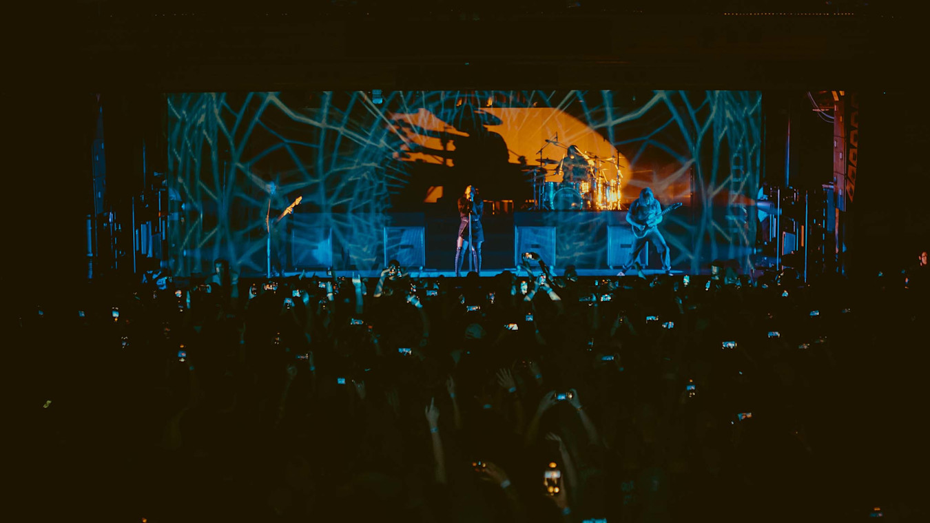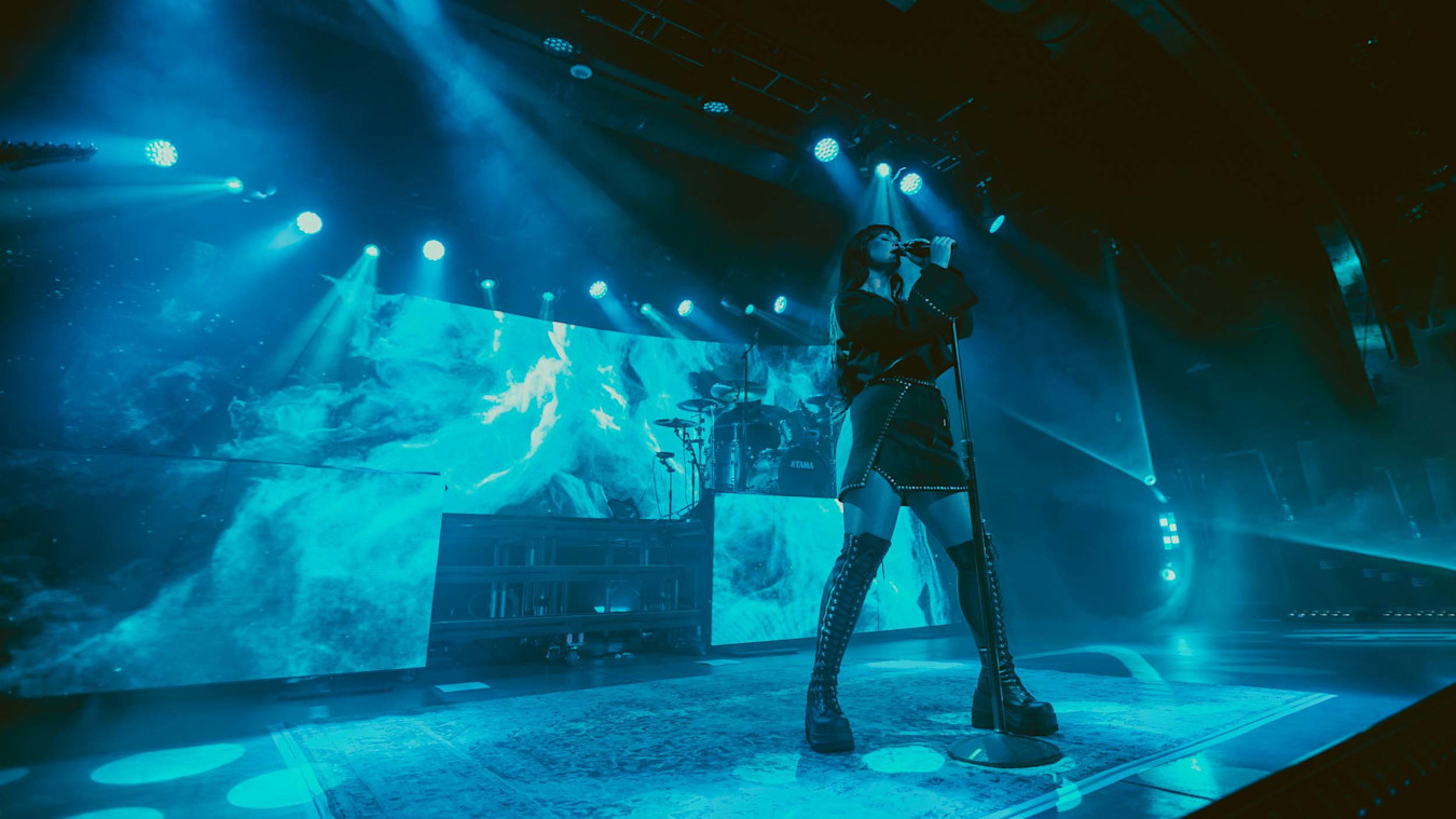 Recently, Production Designer Lenny Sasso and Singer Courtney LaPlante approached SUPERVOID to create a whole visual world to surround and reflect the music of Spiritbox for the Canadian heavy metal band’s tour of their debut album, Eternal Blue. The album’s title was the main inspiration for the band’s chosen colour palette and mood, but the creative team wanted to make what felt like a moving backdrop or physical room rather than simple abstract visuals.