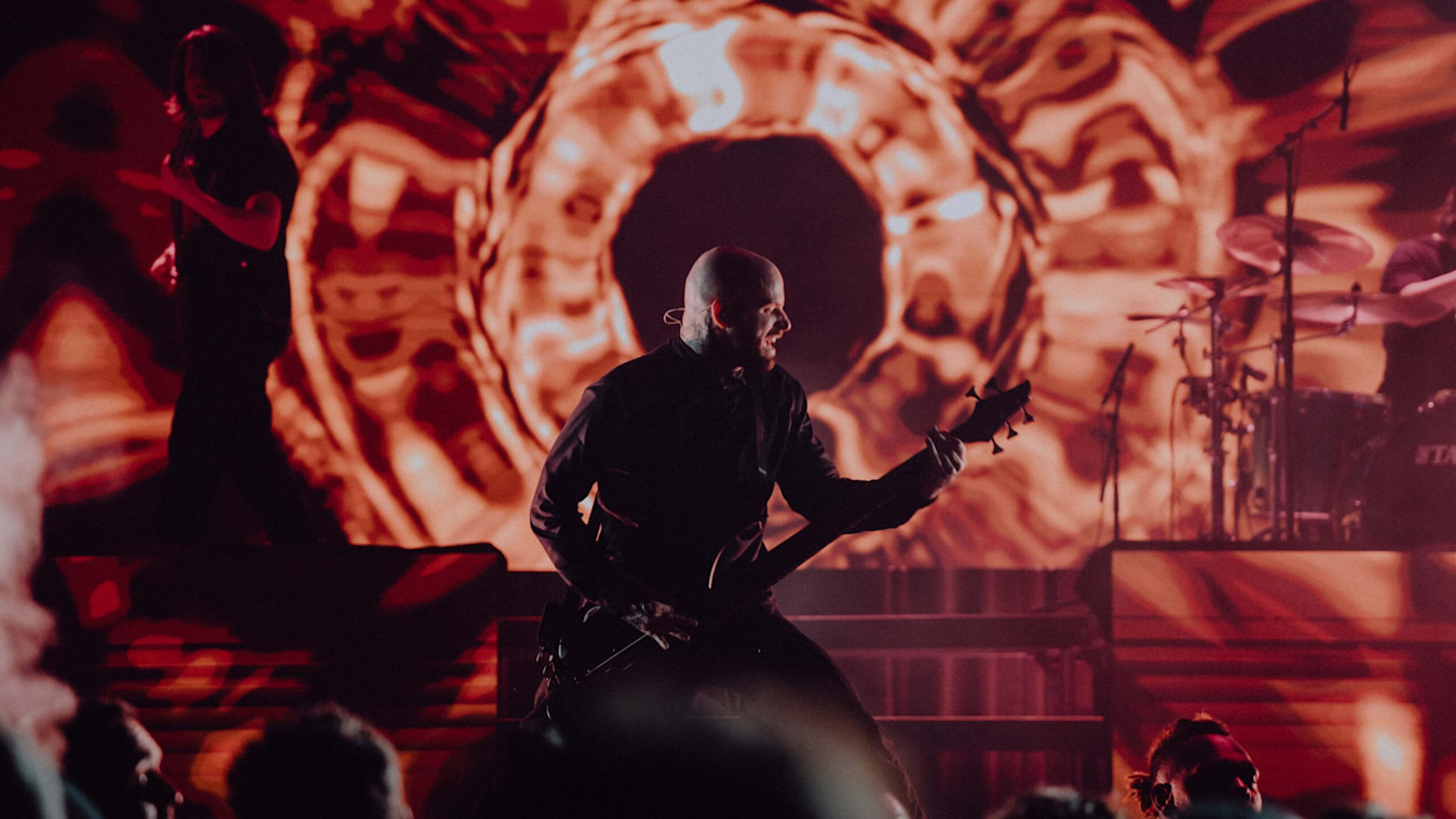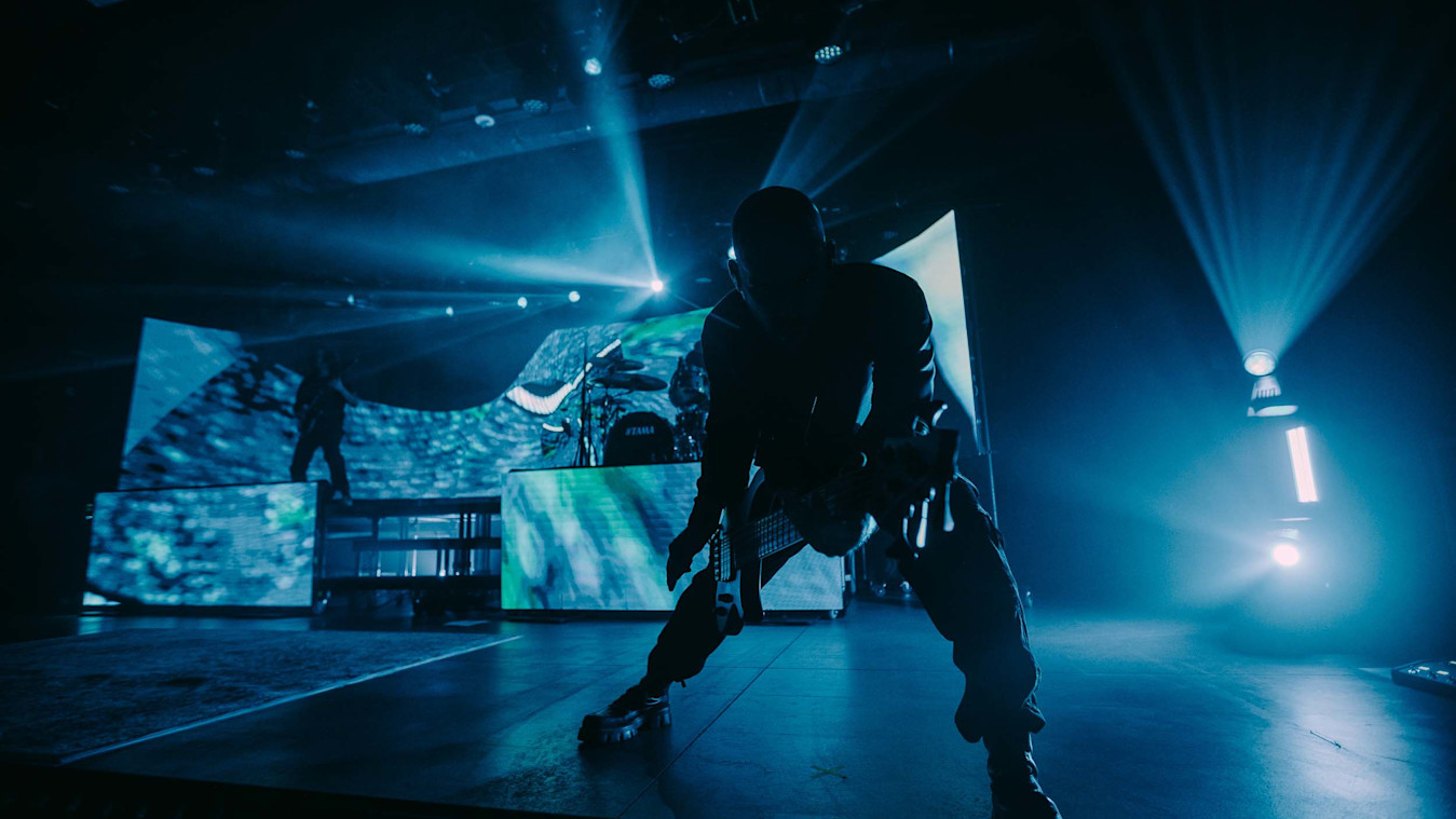 To bring a sense of contrast to the stage, they began the show with a scrim covering the band and featuring the first look of the show: an intricate particle system slowly forming the band’s logo. After that, the scrim dropped, and the multi-tiered video wall behind the band members illuminated, bringing them to the front of the stage. By establishing a rare sense of depth, the team could create a dynamic look that evolved heavily over the course of the show.