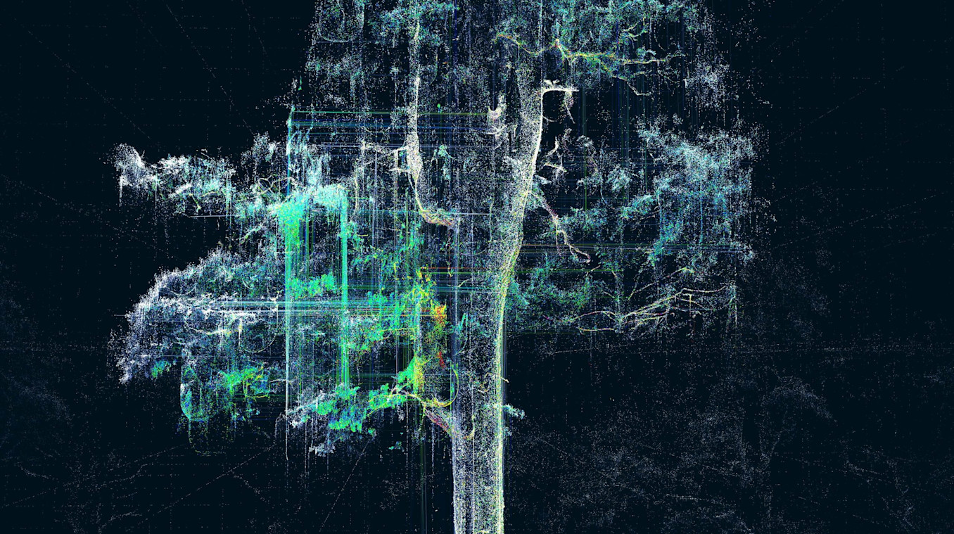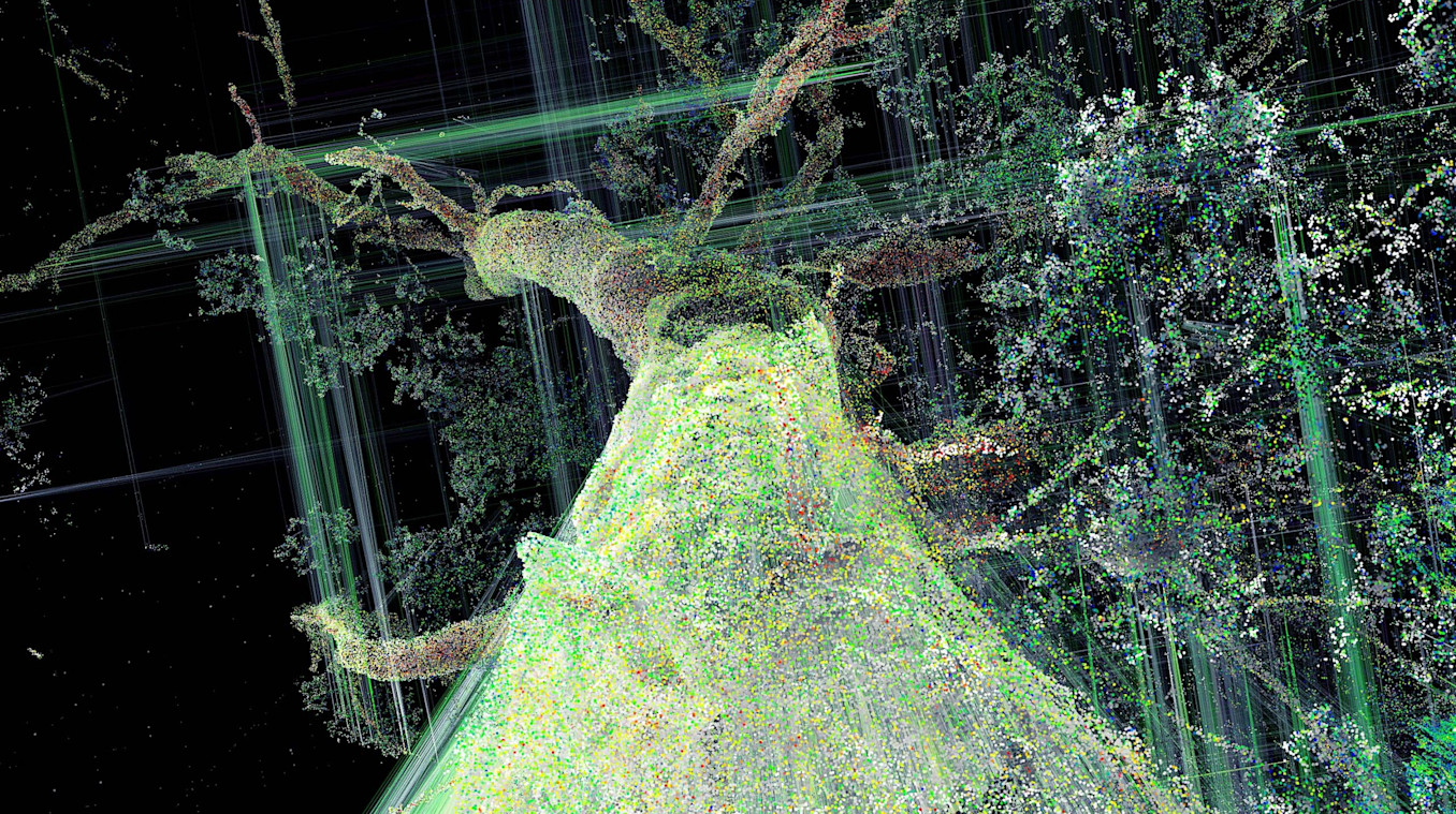 With plenty of previous experience conducting graphic research about trees in his Artificial Visions series, Le Guillou eagerly began creating sequences to illustrate different tree behaviours, such as growth, communication, interconnection, protection, and water circulation.