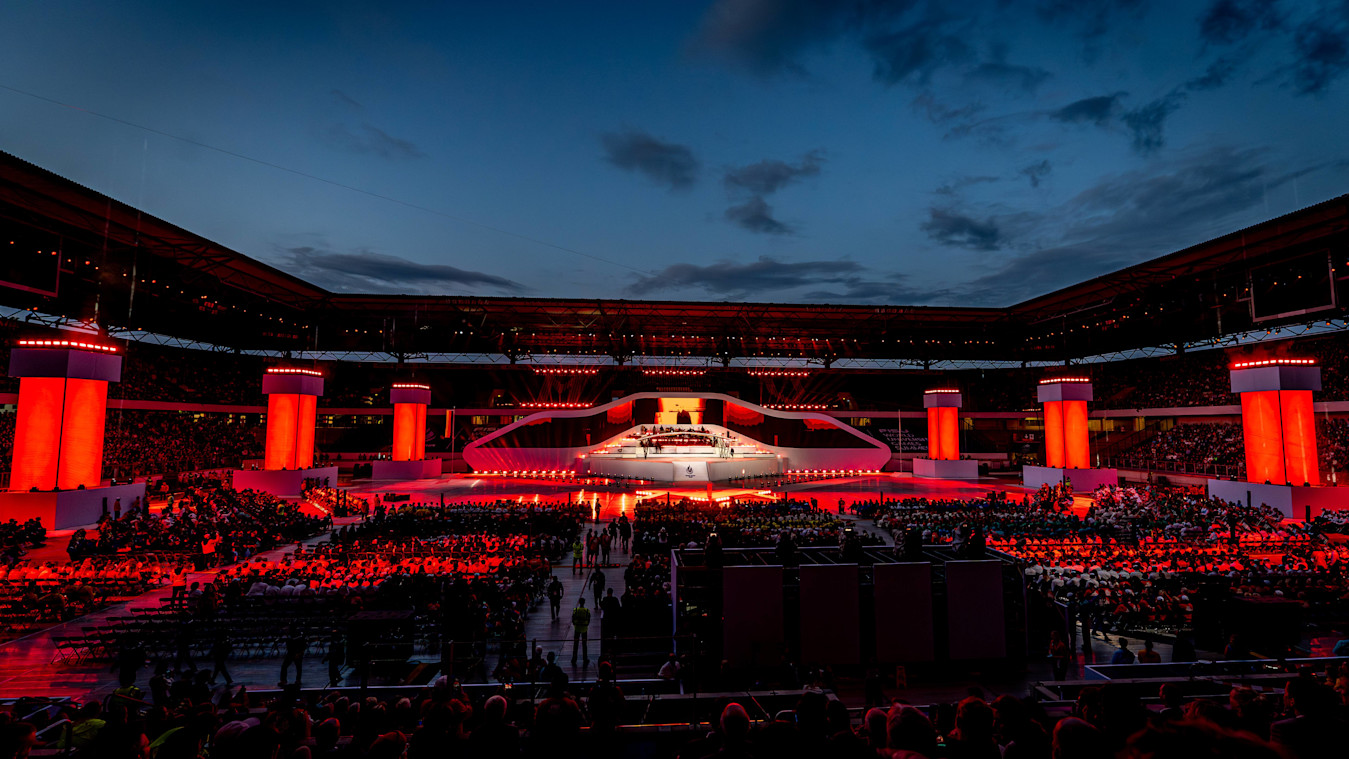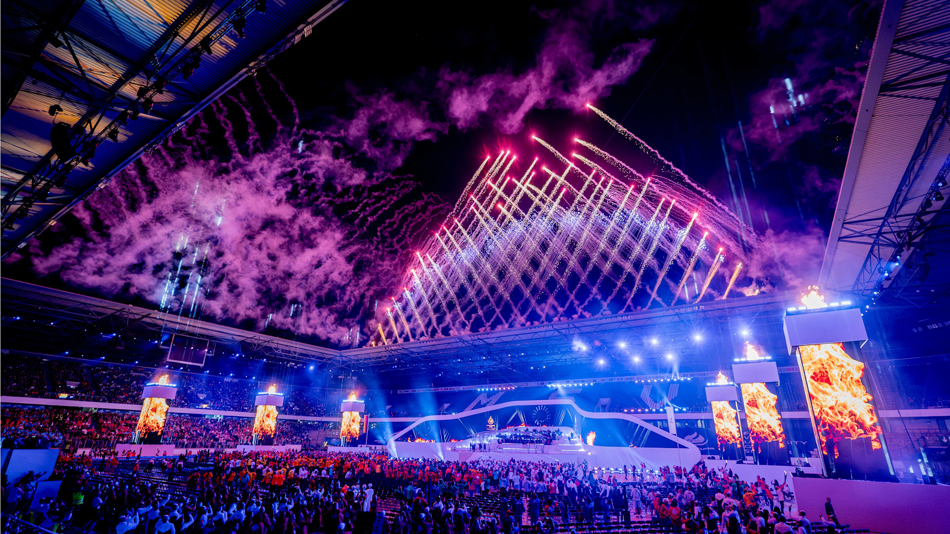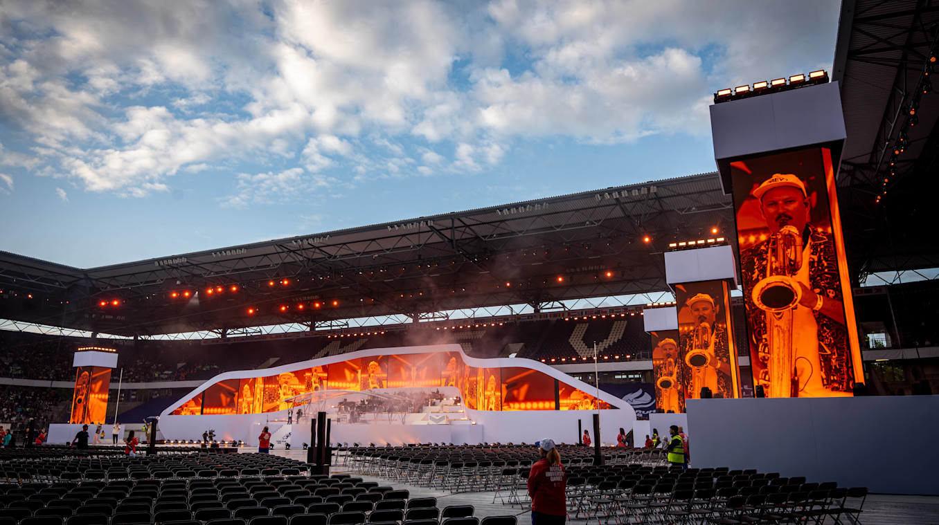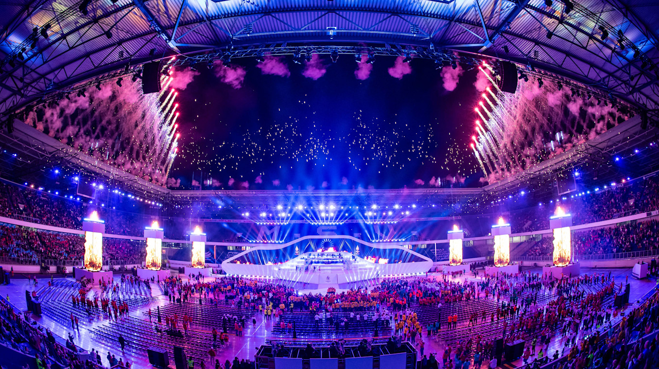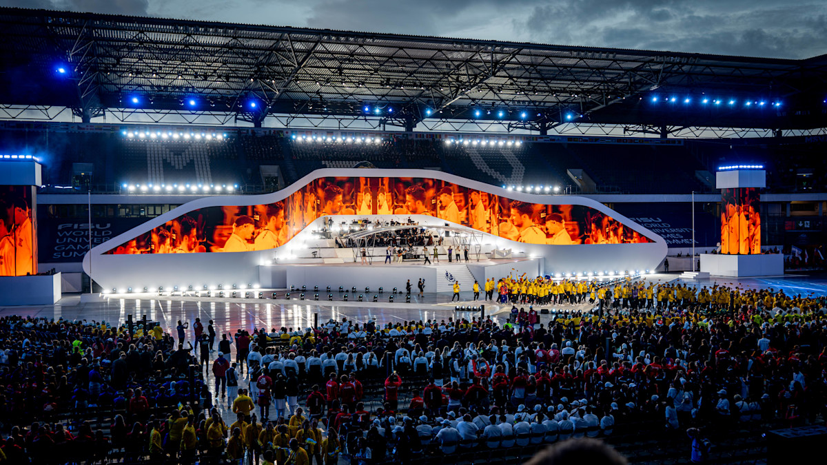 The Rhine-Ruhr Games and Show Concept Creator Hans Mücke approached Gerdon Design to design and deliver a full visual concept for the opening ceremony of the Summer 2025 edition of the FISU World University Games, one of the largest multi-sport events worldwide. The Games organisers tasked Gerdon Design with developing pre-rendered backgrounds to play throughout as well as six unique real-time sequences to accompany featured musical acts, integrating live camera feeds over a canvas comprising a massive 13,500-pixel-wide LED wall and six infield towers.