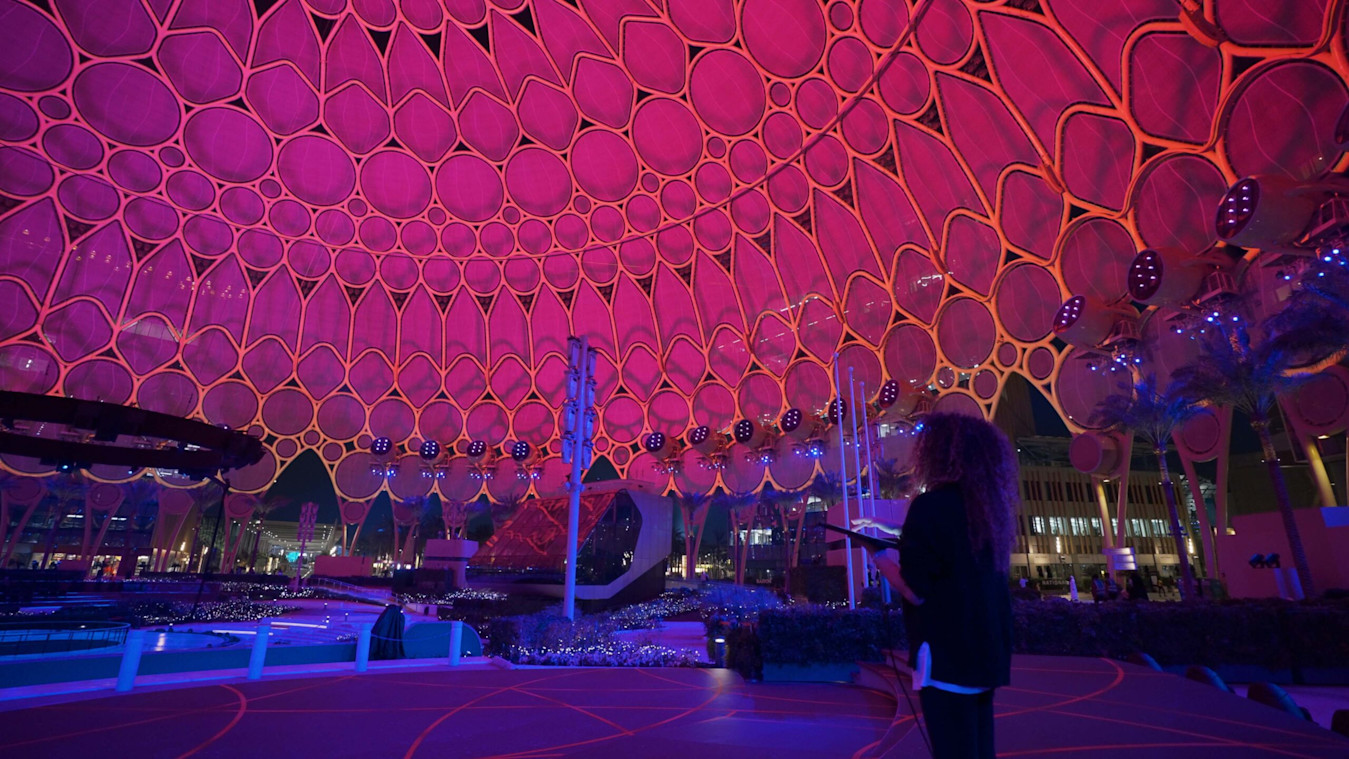 The creative team at Expo, led by Executive Creative Director Amna Abulhoul, had two objectives in mind: to create an immersive experience in which chosen individuals could generate effects within the dome and, in a more practical sense, to use real-time visuals in order to to save time and hard drive space. The visuals were accompanied by interactive audio mapped to the dome’s in-house L-Acoustics audio system comprising 27 discrete loudspeaker arrays and six subwoofers.
