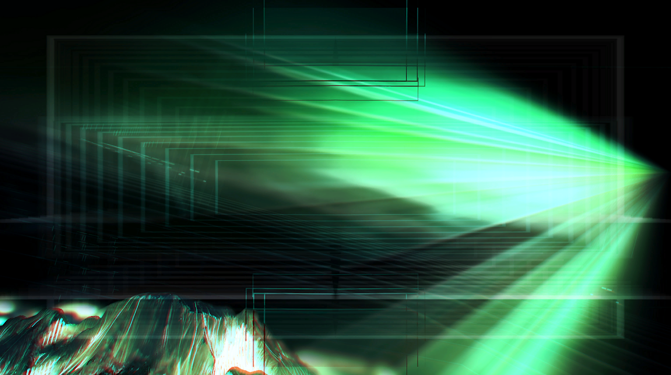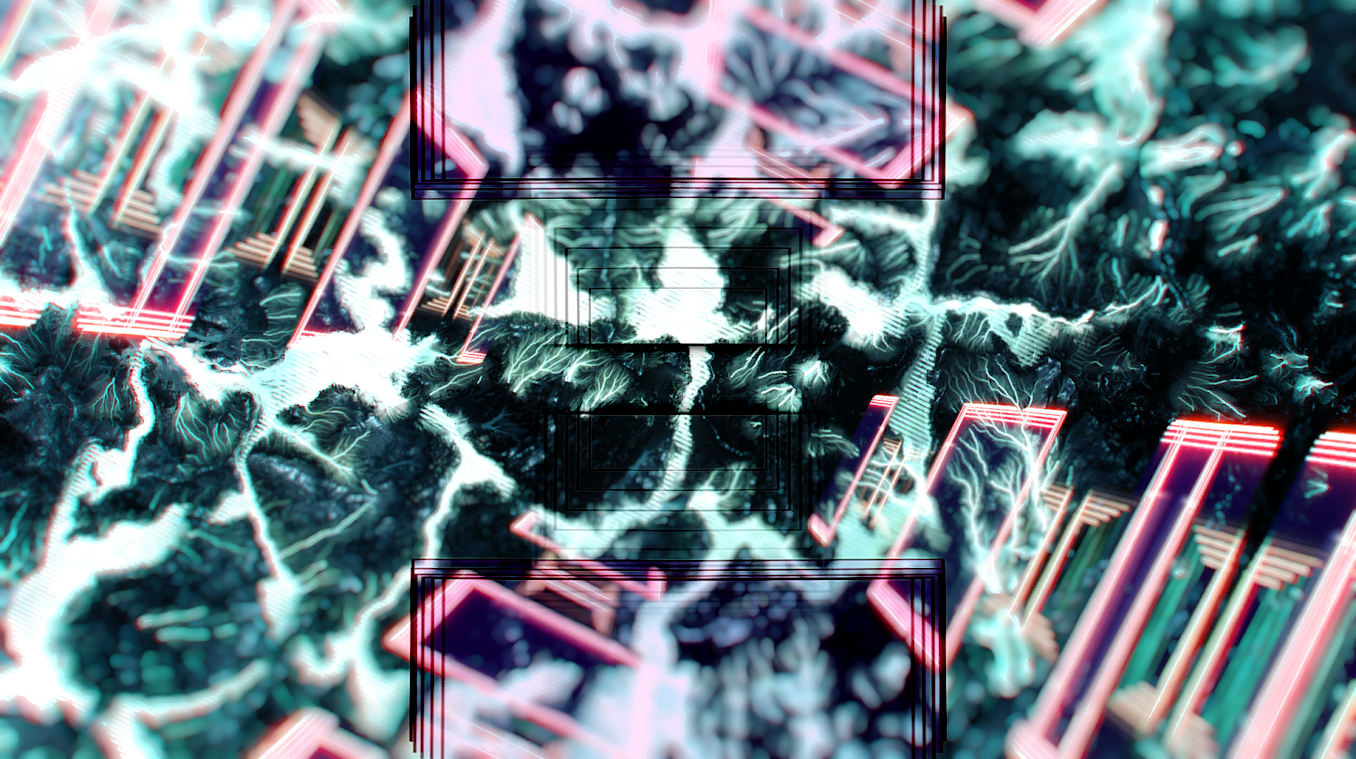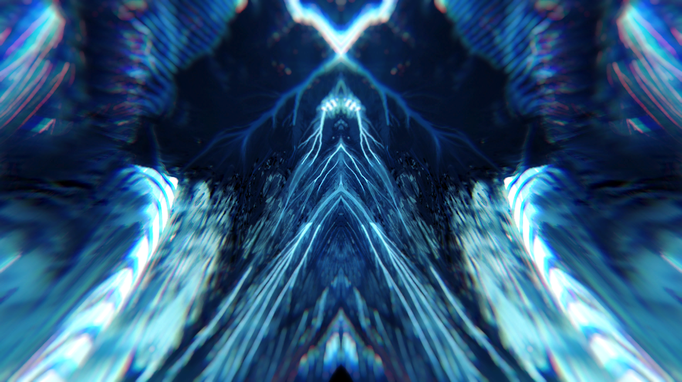 As Shaw explained, “This track has long been a favourite of mine, so I was stoked! I immediately came up with a clear vision of a mountainous landscape comprised of blues and greens with a luminous glow.” Shaw began production by using Resolume to sketch out rhythmic 2D chunks and Gaea to make a procedural mountain, extracting flow maps and saving other layers for later.