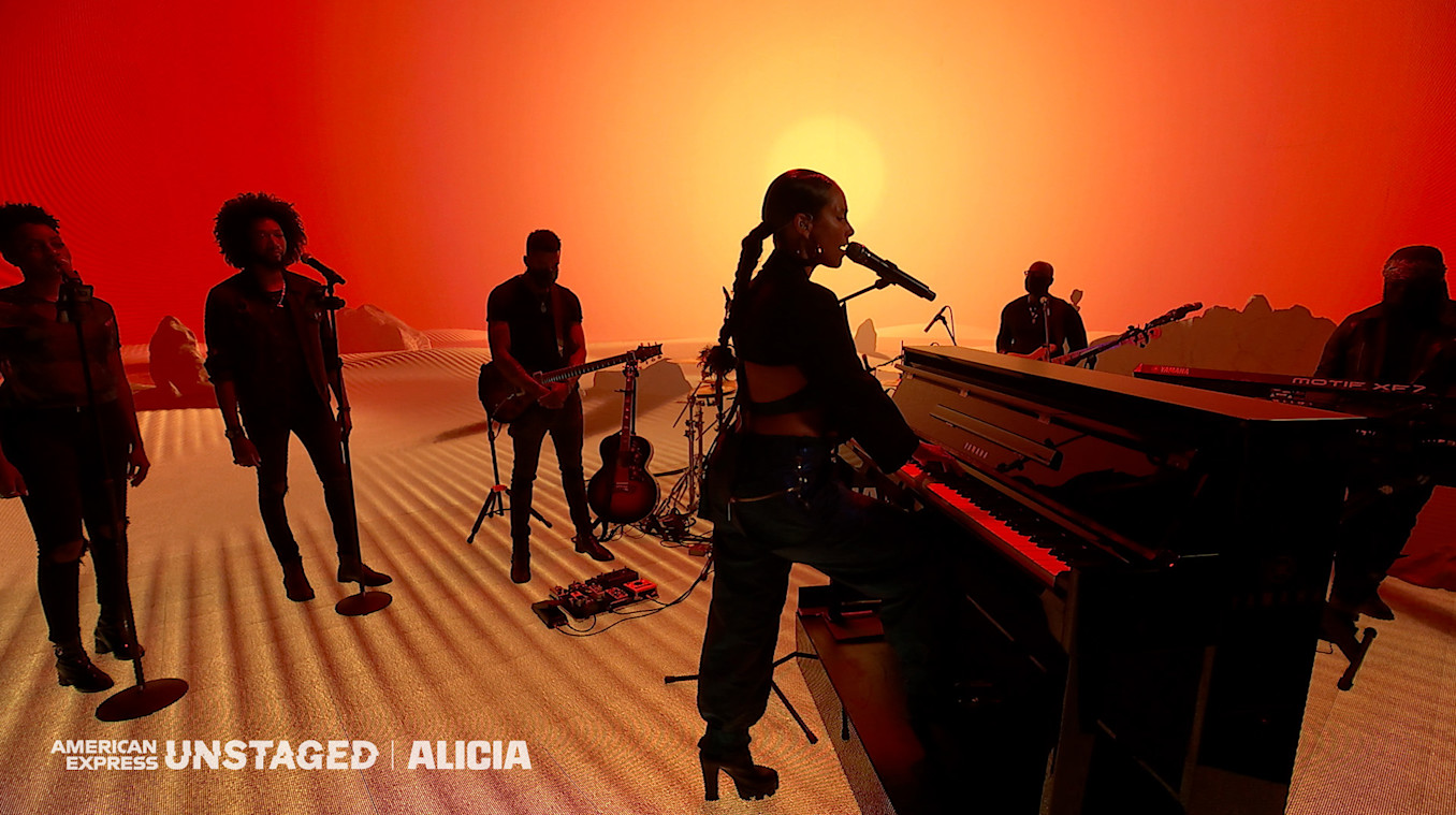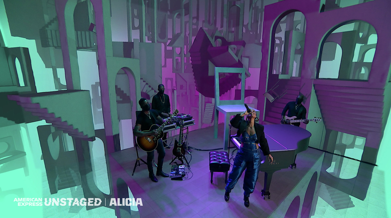 To launch Alicia Keys’ eponymous new album ALICIA, American Express and Momentum approached Aggressive TV to develop and direct an hour-long XR performance. The performance premiered live on September 18th, 2020 as part of American Express’ prestigious UNSTAGED concert series.