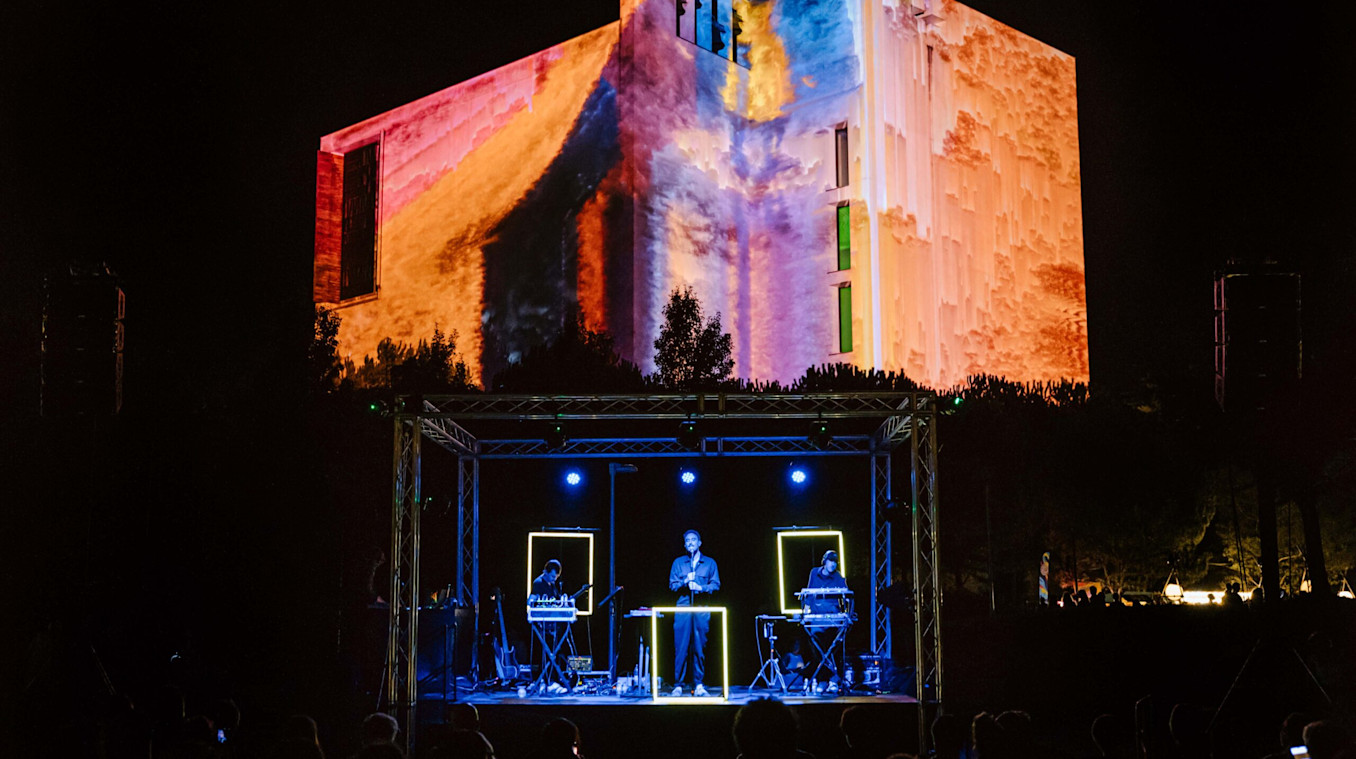 On the 6th and 7th of October 2023, Desilence collaborated with TMATNB (The Morning After the Night Before), a self-described “electrohangover” band from Barcelona, to make audio-reactive projection-mapped visuals for San Sebastián’s second Argiartean (Basque for “In the Light”) Festival, which promotes experimental art and the avant-garde with monumental projections and light-art installations.