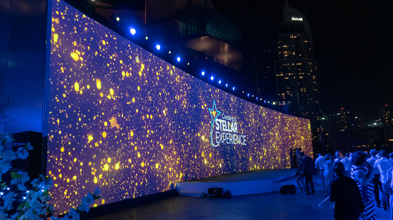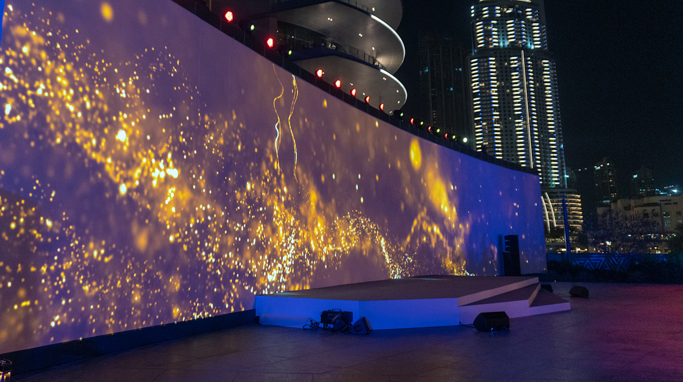 “The brief came from MassMutal agency, they asked for a piece of entertainment inspired by Dubai. The theme of their dinner was diamonds and stars, so we knew that particles and 3D objects would play a large part in our design. We have several shows in collaboration with dancers, and we knew that for this production, we wanted a dance that synchronized with video content.”