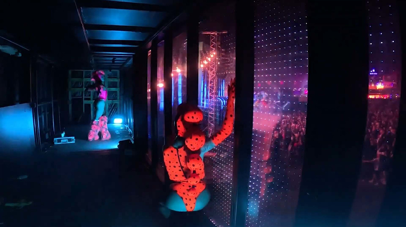 This past August, Metropolis Design LTD and LEDs Akimbo (along with the Happy Slap Boutique dancers) returned to the pillared Zenith stage in the high-tech Metropolis district of Boomtown for the 2023 edition of the Fair. The creative team used twenty-three light boxes featuring a video wall as a light source and ten giant crystal sculptures clad in over 30,000 RGB LEDs placed on top of two container ships as a centrepiece.