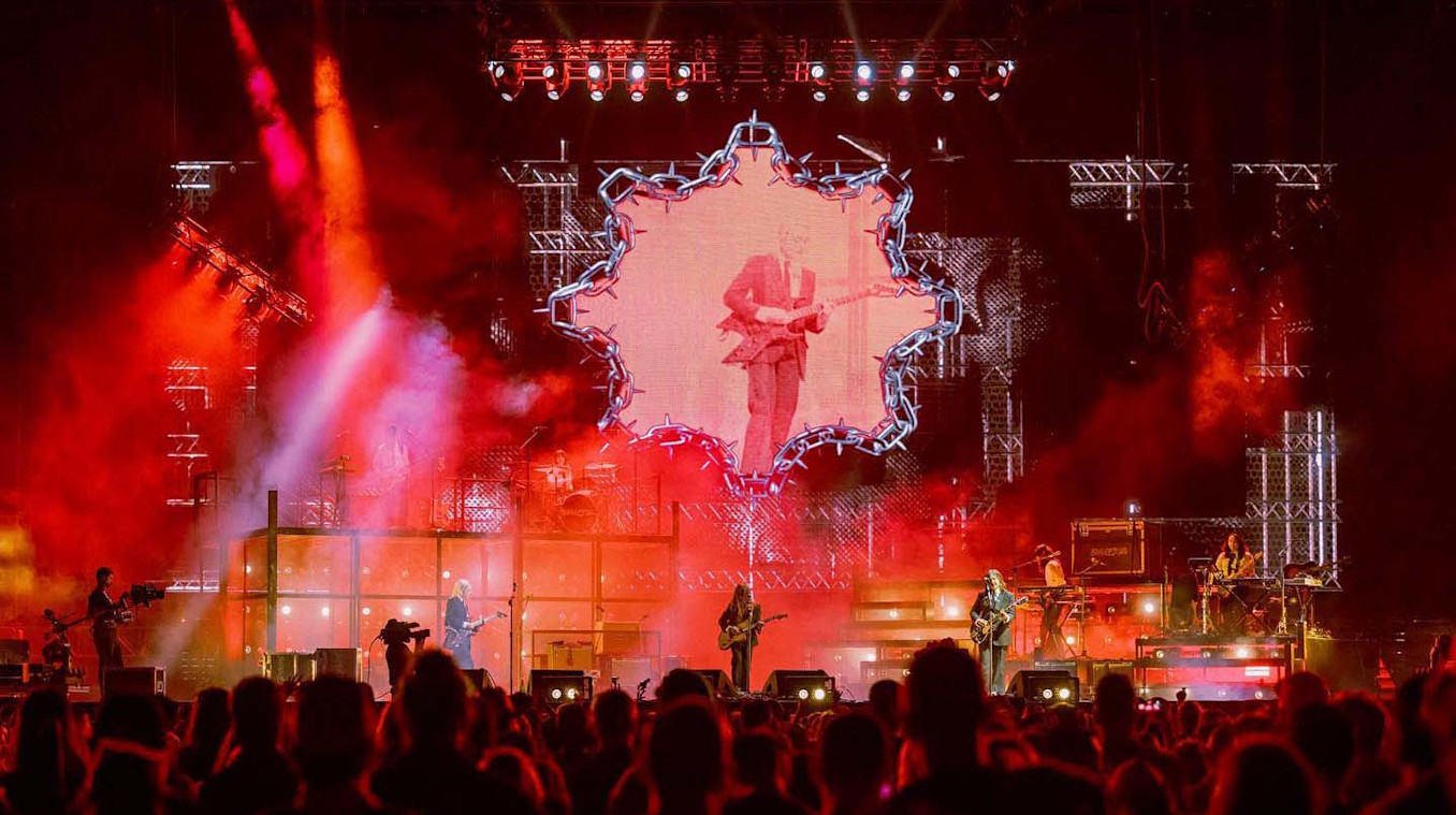 In a landmark year for indie supergroup Boygenius, TAWBOX and Pixels & Noise joined forces to create visuals for their Coachella set. They planned to augment the stage design with a virtual set extending into the LED, using screen content almost as a stage prop that would react to the practical lighting. It was about subtraction as much as addition, with the visuals going black and creating the illusion of an endless stage in many moments.
