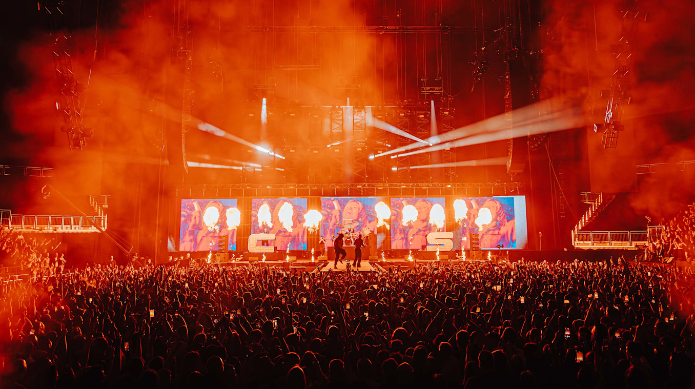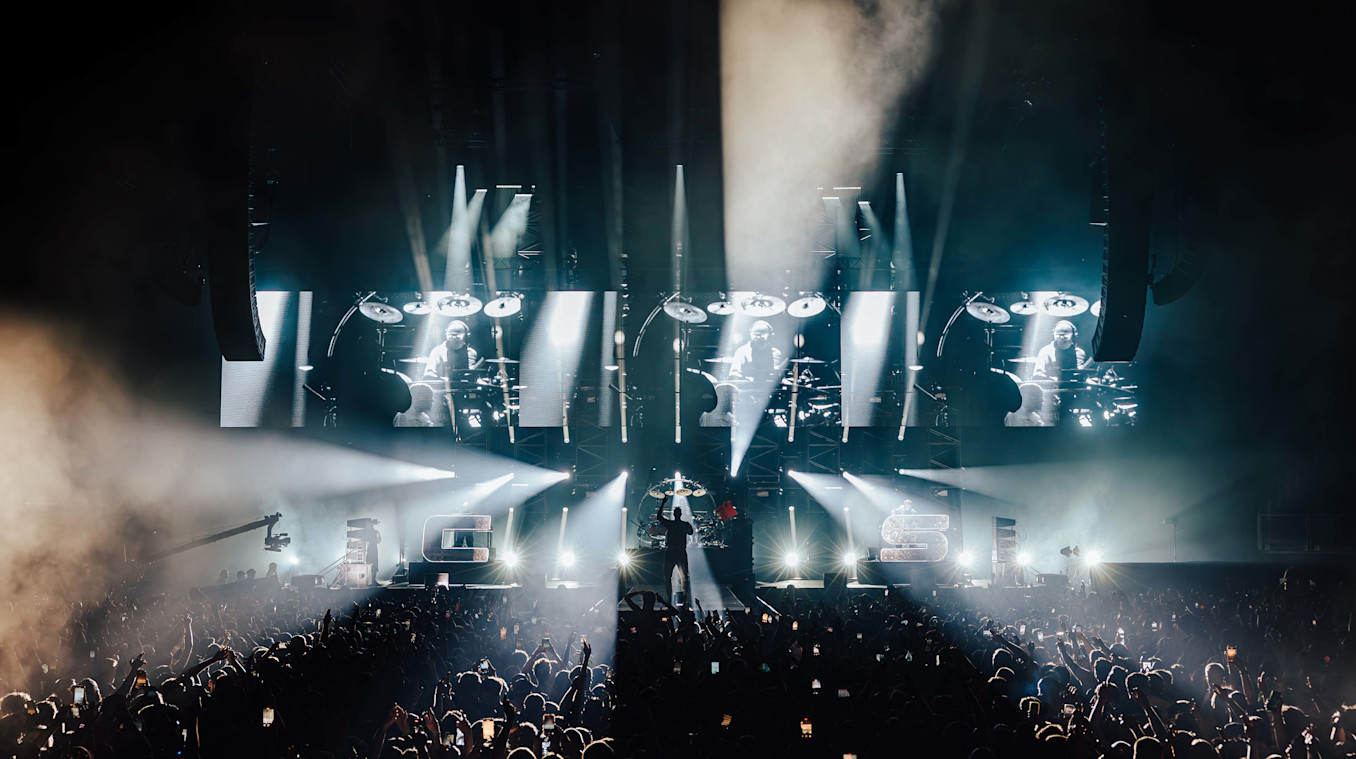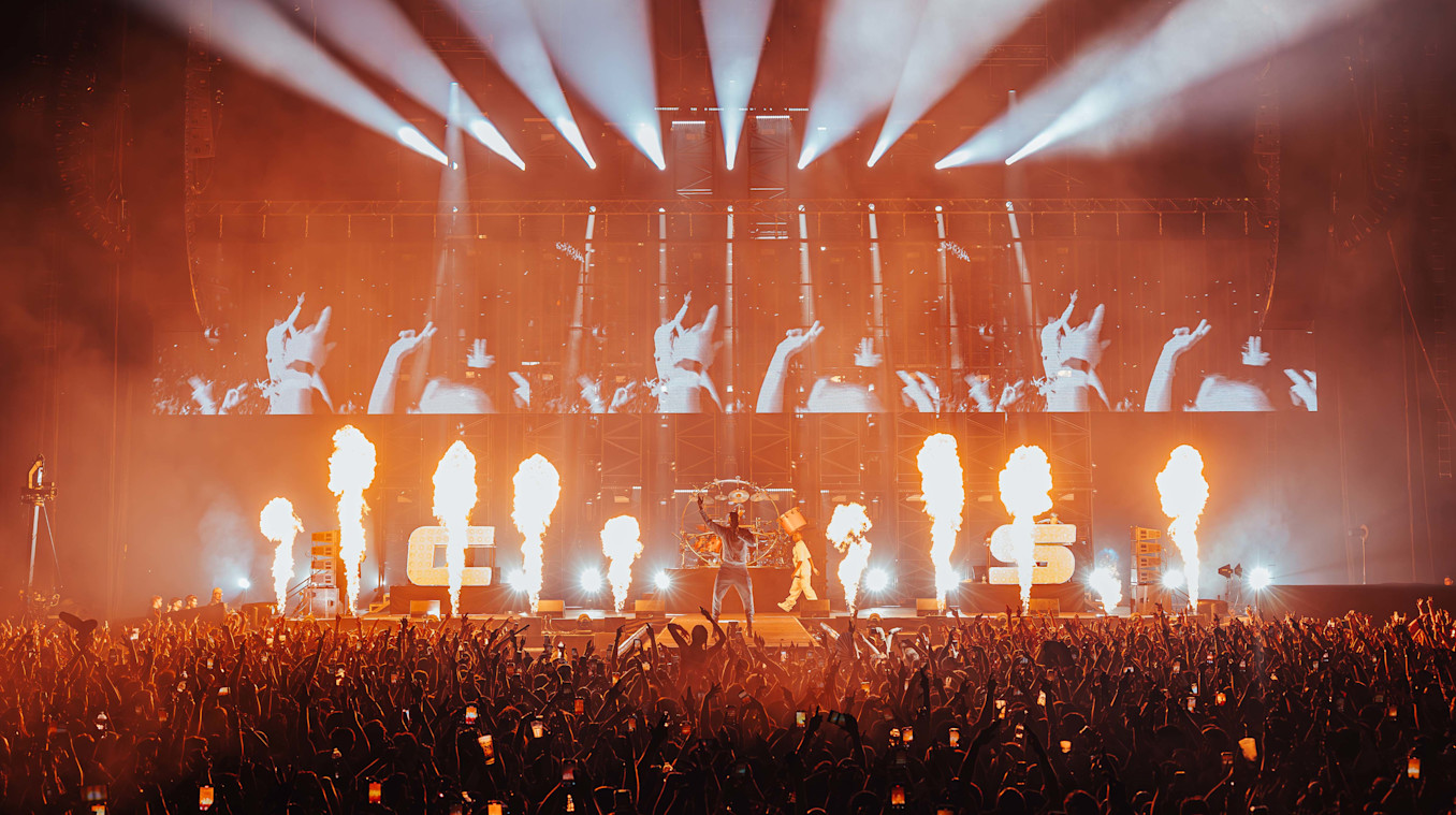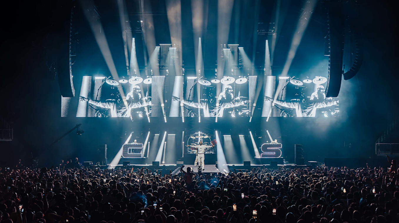 FRAY Studio worked alongside Vision Factory to design Chase & Status’ 2025 arena tour. Together with Two & Eight, the team planned and executed a whole film shoot to capture all content in camera without CG or animation. Will Kennard (Status) also provided guidance and visual direction throughout production, with his wife (and the group’s manager), Sophie, coordinating workshops between the teams.