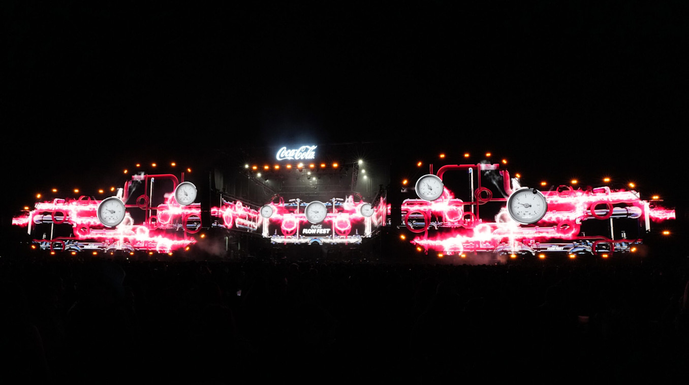 Production Manager Salomón Soloveichik recently approached Dream Front Labs, asking them to develop a video system that would include Notch content and video effects for several artists performing on a small stage at Mexico City's Coca-Cola Flow Fest–the largest reggaeton festival in the world. As Notch Designer Hugo Zarate explains, it's a genre that is very flexible, as it allows for heavily processed effects without coming across as over-the-top.