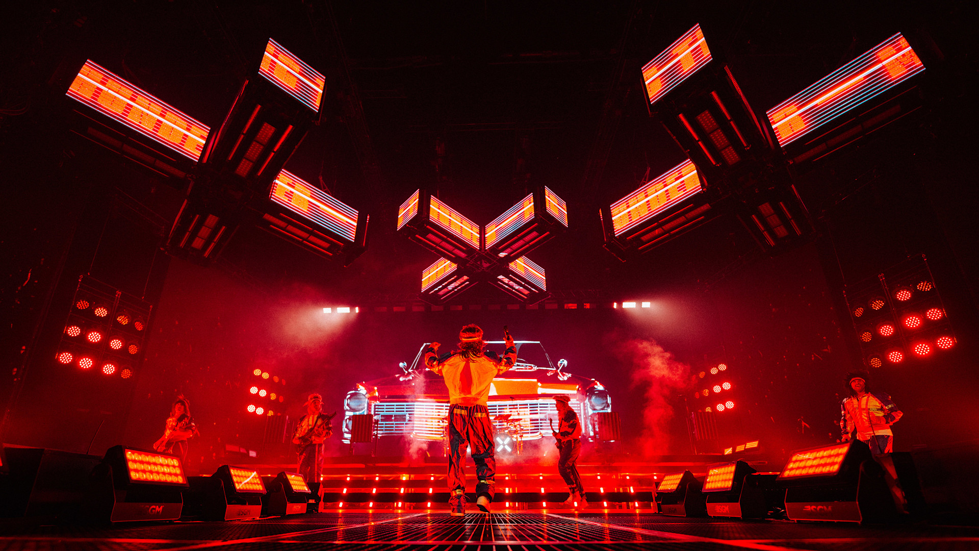 As the band rapidly grew into playing much larger shows, they needed a production partner to help turn their ideas into a detailed, precisely timed live concept. Given the complexity involved, kinetic movements, beat-perfect pyrotechnics, and multiple costume changes mid-set, it was essential that the entire concept came from a single, coordinated source.