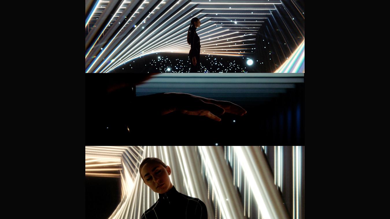 Sarah: “Elle and Fleurie had an idea of the storyline for the video; however, she had a section of the video which she wanted to leave up to us. In the video, Fleurie travels through time and into different fantastical worlds. Elle wanted us to imagine the futuristic world, which we envisioned as a sci-fi tunnel, an underwater scenescape, and a space filled with ethereal light.”
