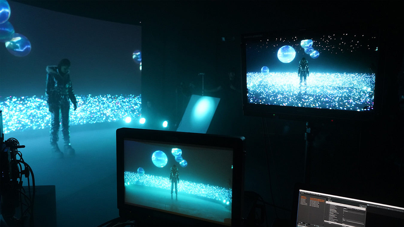Nick: “This production workflow is an innovation for the creative process. The digital set removes lengthy and expensive post-production processes, and instead allows us to make real-time editing decisions on site. We are saving our clients an enormous amount of time and money with one-and-done captures while offering a new experience for the performer by replacing the empty green void with visuals they can see and believe.”