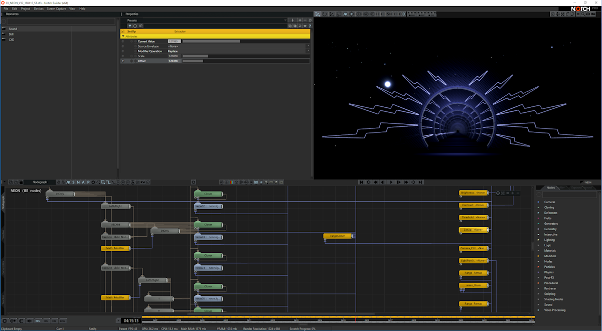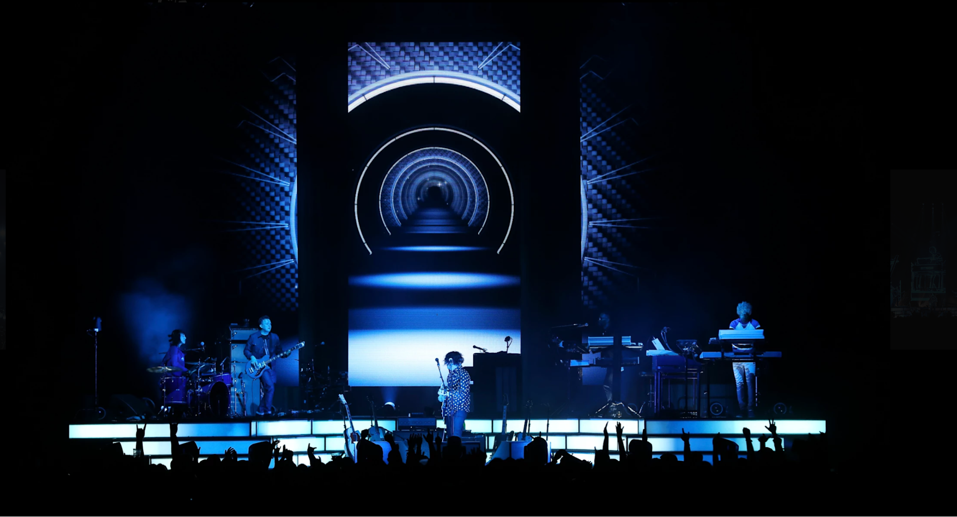 "Jack White has a very strong visual style that runs across all his platforms. It was essential that blue was the focal colour used and that all visual elements be grouped in threes. At the start of production, we were briefed that the entire show would run live—no setlists, as setlists aren’t Jack’s style". Matthieu needed a tool that could facilitate the creation of interesting, contemporary content whilst giving them the freedom to adapt this content live. Larivée chose Notch.