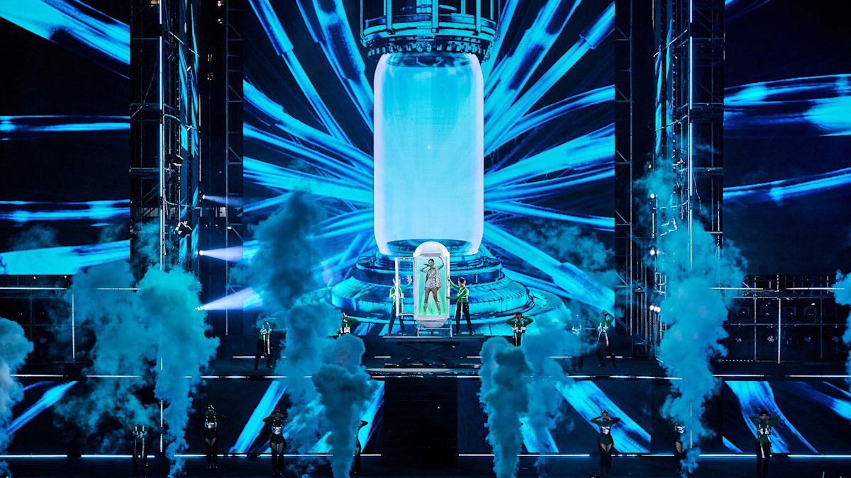 MXC's approach was simple: if a visual fit the stage, they'd keep it. With such a large canvas, they knew they'd need eye-catching objects and vibrant colours to keep the audience engaged. After receiving the complete plan for the LED stage, the team drew a storyboard to guide where to place their visual assets and animation.