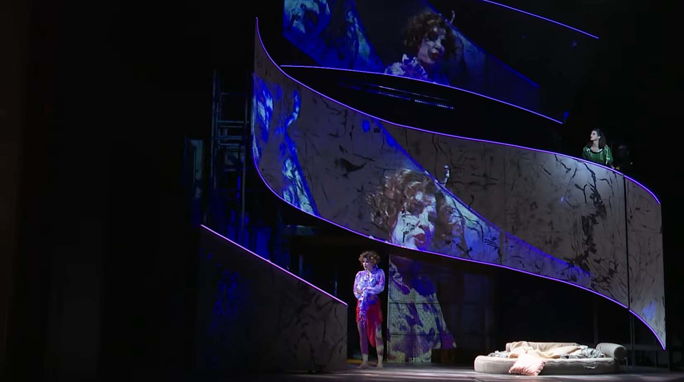 While in pre-production, the creative team imported the 3D stage into Notch. From there, Gasteiger iterated various projection surfaces to determine the masking process. At this point, Director Isabella Gregor could see what the effects would look like. The team used Notch to create both rendered content and real-time video effects. The Virtual Background feature was used to balance the visuals throughout the performance.