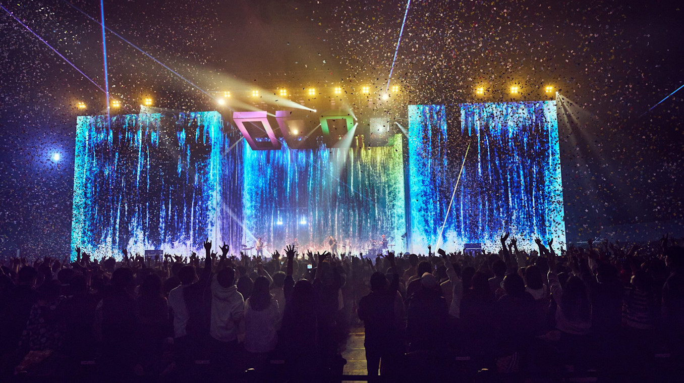 Working with regular collaborators HAKUNAMATATA, AMBERIN designed the stage with a giant LED screen wrapped around the walls of the room and four kinetic, square frames. This year, they tried a lot of new techniques, implementing interactive elements between stage setups and videos and crafting a multitude of special effects. They used Notch as their primary video production programme along with Cinema 4D, Unreal Engine, Adobe Creative Suite, and more.