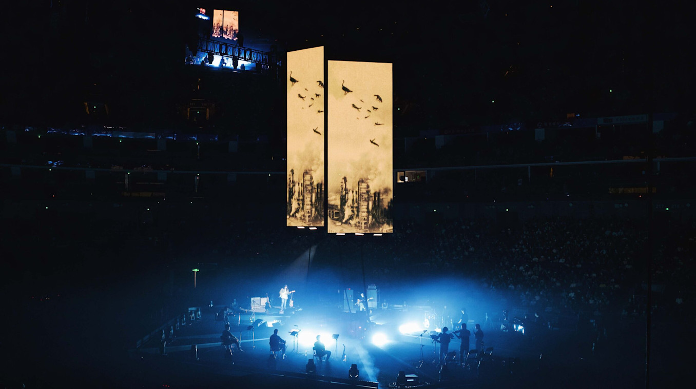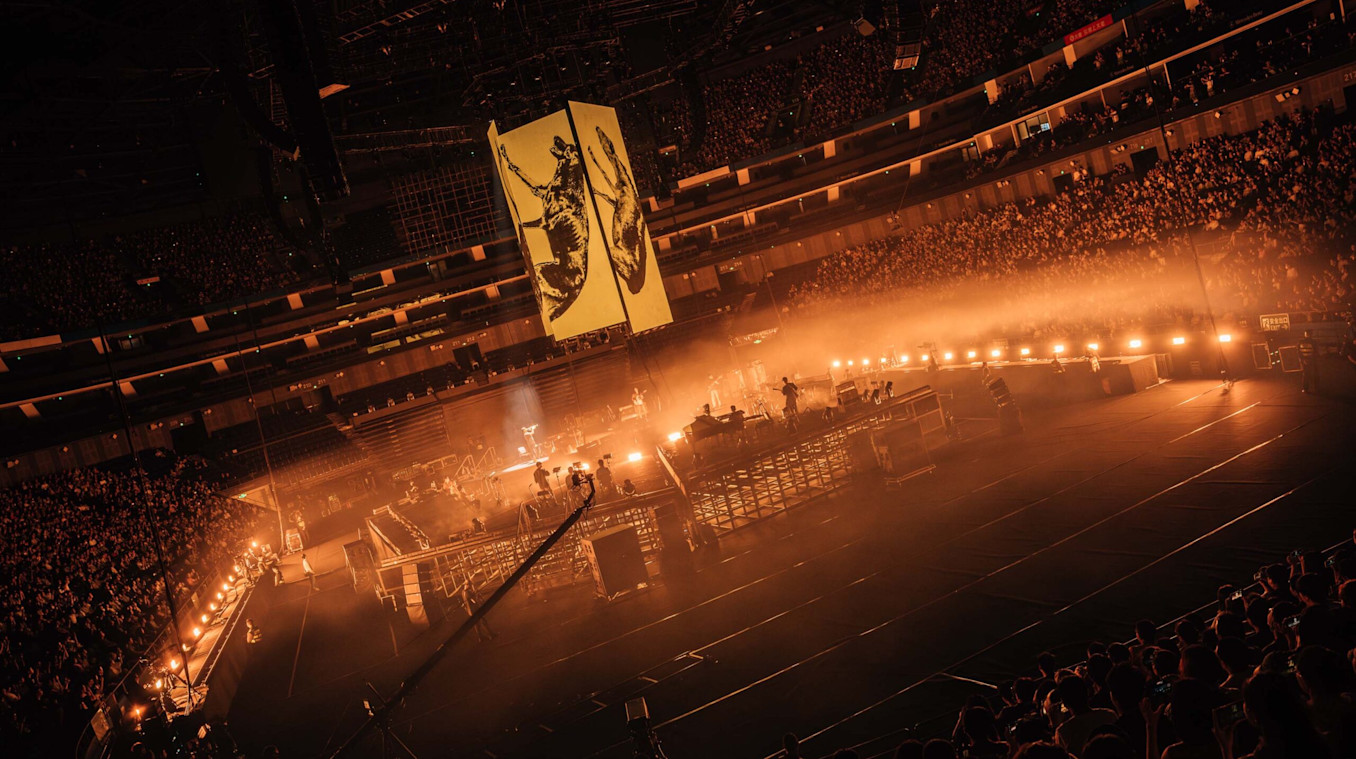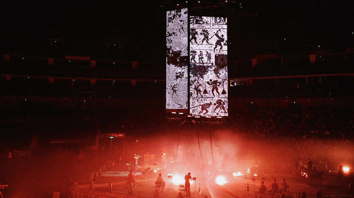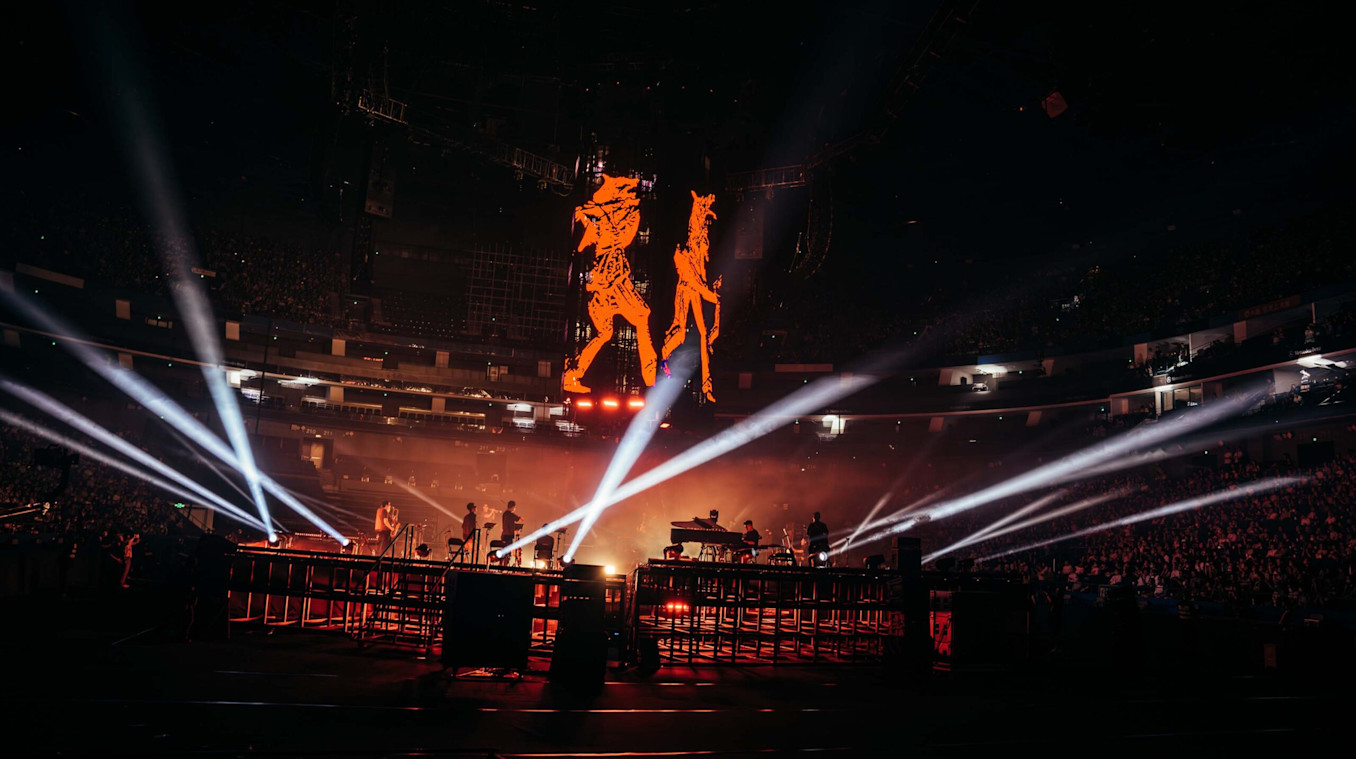 To create visuals for Chinese alt-rockers Omnipotent Youth Society’s latest performance at Mercedes-Benz Arena in Shanghai, LiveNation gave the creative team a lot of space to experiment. With the help of Creative Director Ruan Qianrui, the band came up with a unique vision they wanted to develop for every song.