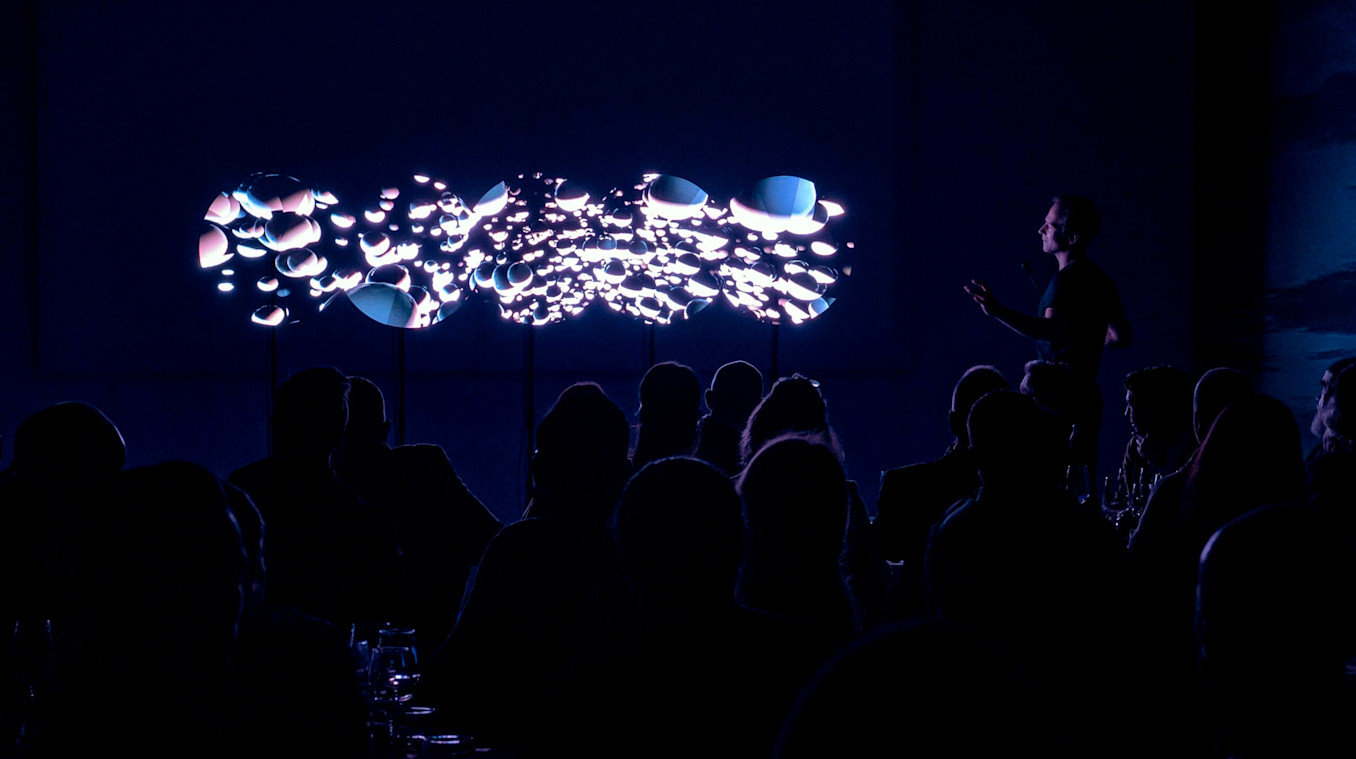 After being contacted by Events Concept to create a three-night performance for Geneva’s annual Watches and Wonders–the world’s biggest watch fair–Visual Artist Romain Lalire had the idea to use magic to captivate attendees. Luxury brand Panerai asked Lalire to centre his presentation around their Radiomir watch, which is inspired by water and the sea.