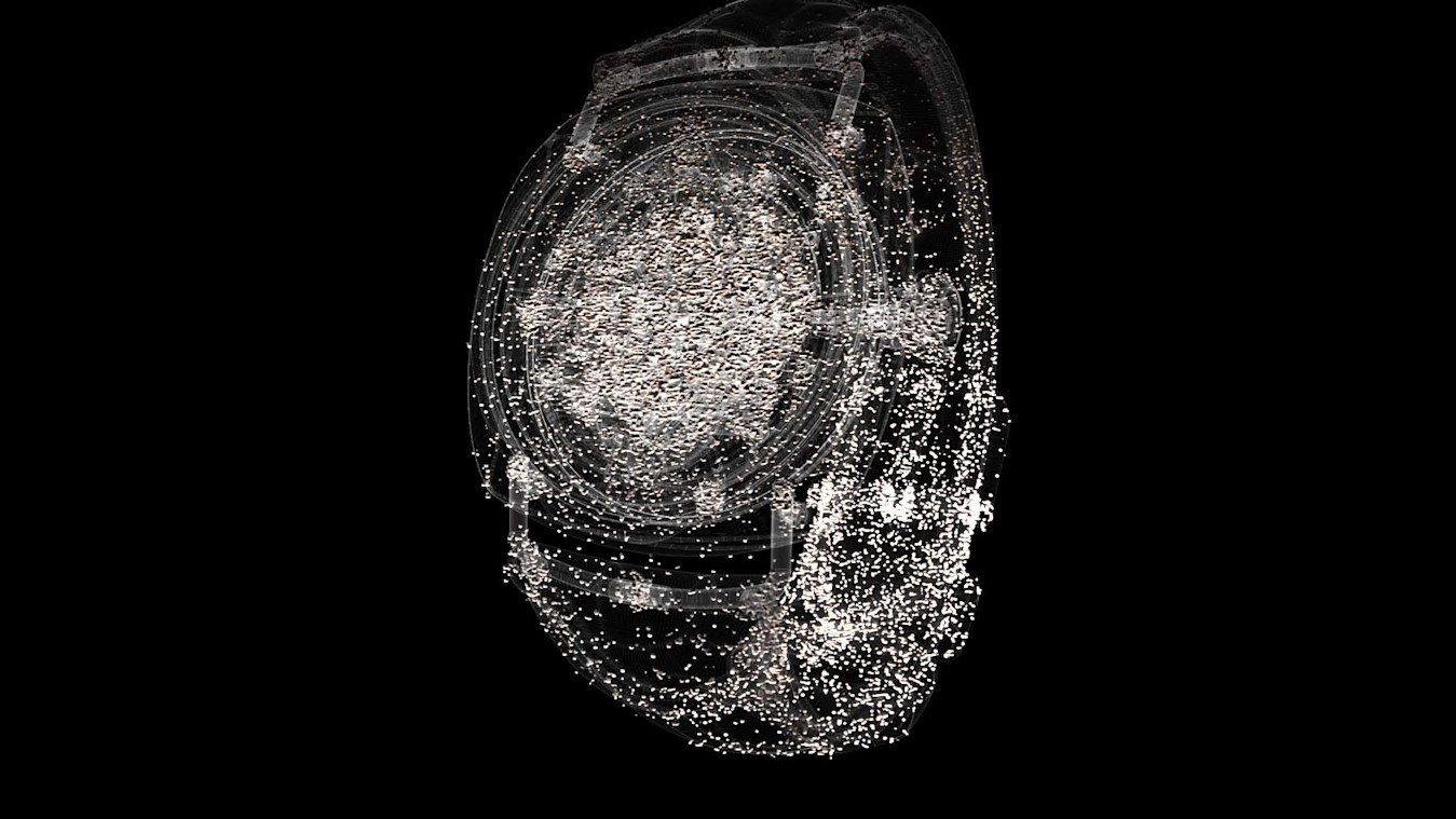 Lalire wanted to illuminate the journey of a cluster of particles, starting with a single particle inside a light stick that transforms into a particle of water, waves, and the watch itself, eventually coming full circle and reverting back to its original state as a single particle. He didn’t have much time to create, but he wanted to leave room for “happy accidents,” so he decided to use Notch.
