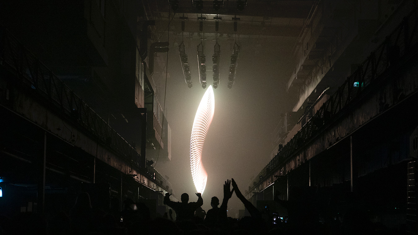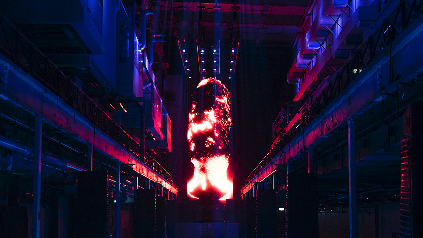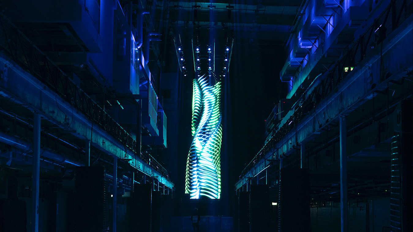 “We had been working with The Hydra for several years producing visuals for underground electronic nights all across London. The Hydra became part of the core team at Printworks, developing and shaping the trajectory of the venue. They brought us on board very early in the process to consult on the visual design at the club. When we initially came onboard as visual designers, multiple smaller screens made up our canvas. However, in 2018 we decided to install a large 4m x 12m Roe Vanish 8 transparent LED which completely shifted our approach to video design at Printworks. This new screen was a completely different aspect ratio, which meant we had to start from scratch with our content design. It seemed like a good time to learn a new software to help us render high-end video for this huge new screen.”
