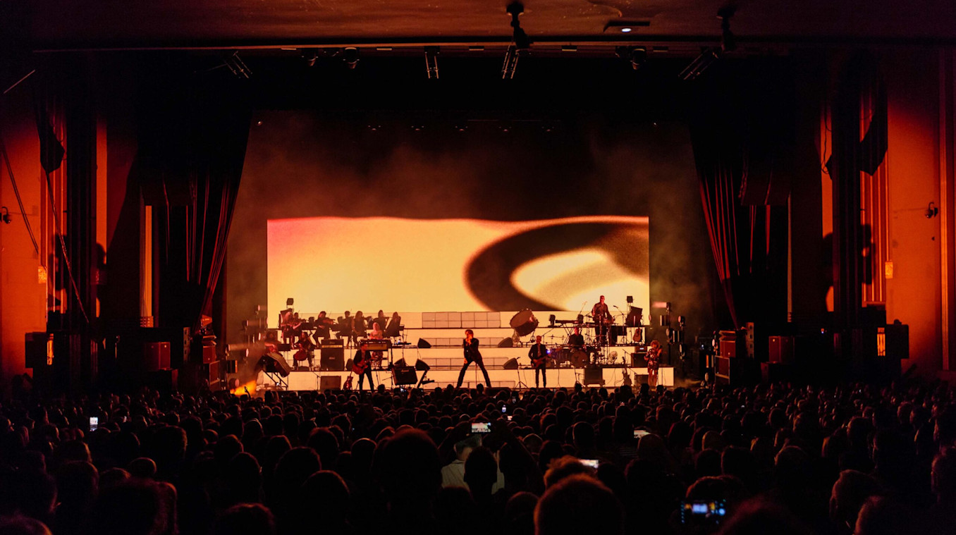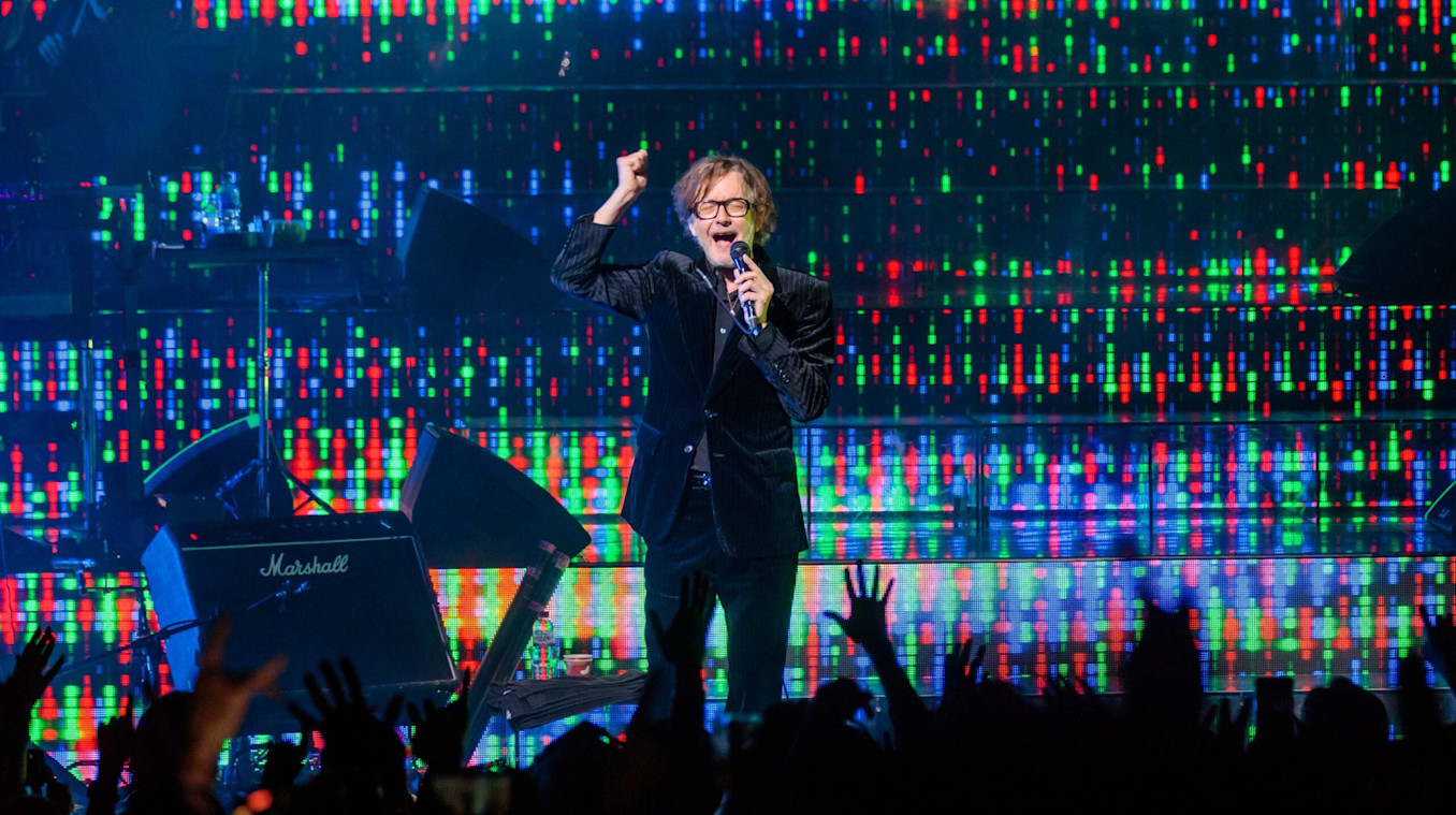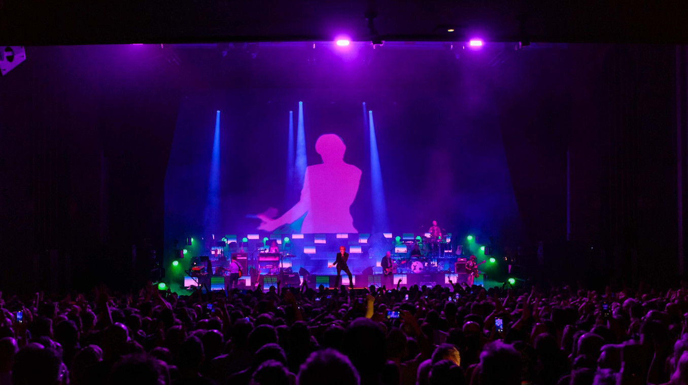 This past spring, Pulp commissioned Studio Flint and Intro to produce video content to accompany their reunion tour, What Exactly Do You Do for an Encore? Frontman Jarvis Cocker, Creative Director Garth Jennings, Production and Lighting Designer Douglas Green, Production Consultant Rob Sinclair, Art Director Julian House, and Video Designer Leo Flint envisioned a show that would translate the band’s signature energy into a clear visual form.