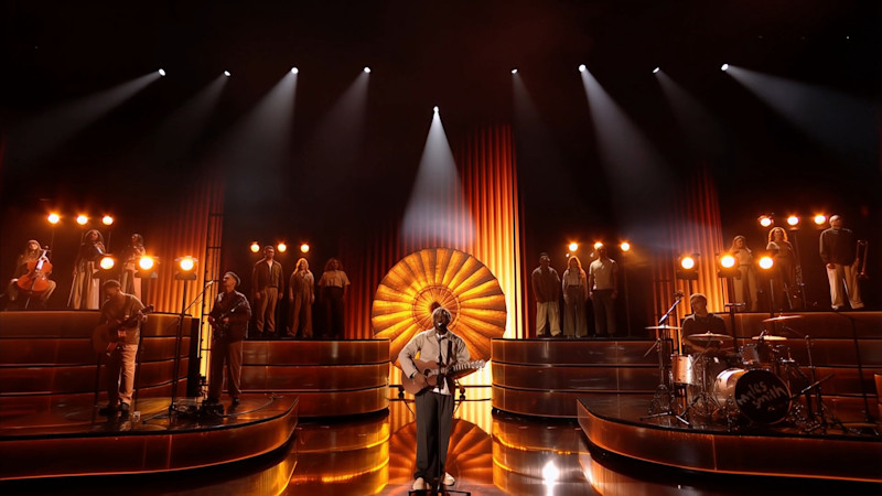 As lead designer Lydia Caplan explained, NorthHouse used the architecture of Buckingham Palace as a 3D canvas that could be transformed with their design ideas. For Alicia Keys’s performance, the team poured liquid platinum over the Palace. For Diana Ross’s, they swung disco balls around the Palace. When Duran Duran took the stage, the outer walls of the palace “peeled back” and displayed seventy layers of wallpaper inspired by Her Majesty’s styling over the years.