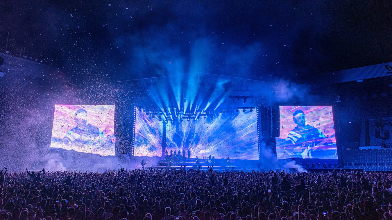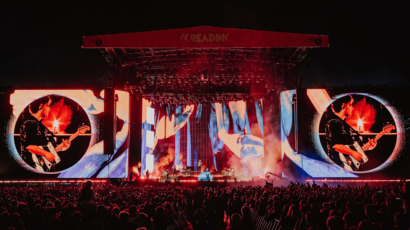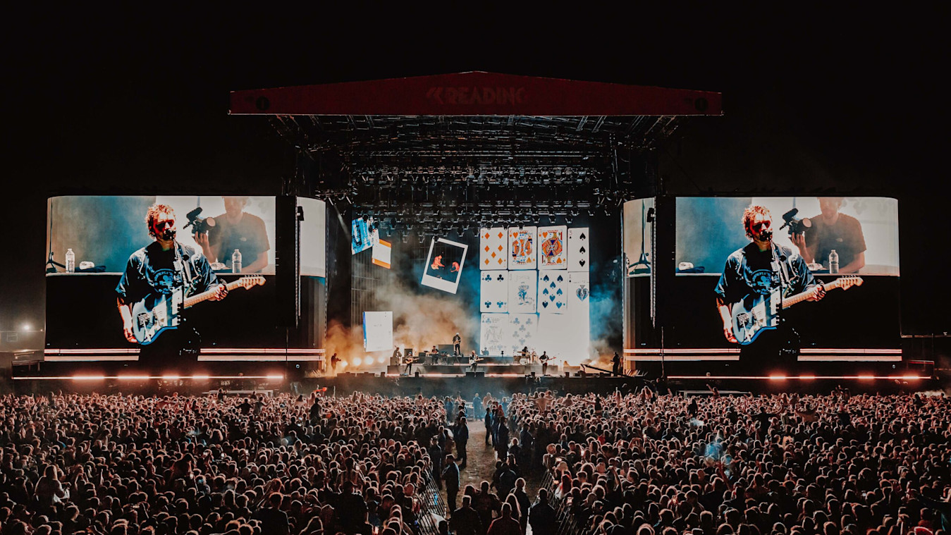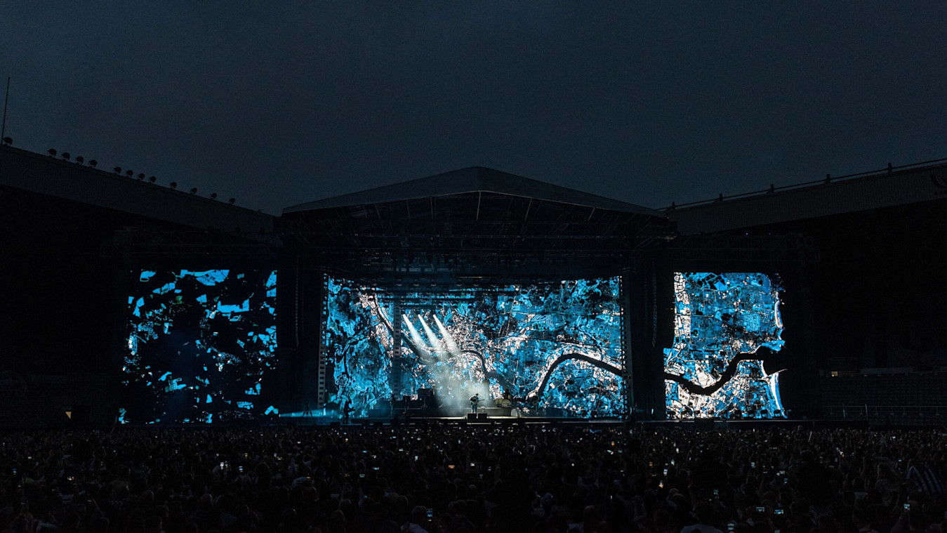 While preparing work for Sam Fender’s 2023 performance at Reading Festival and homecoming show at St James’ Park, Newcastle, Show Designer Sam Tozer brought in The Unlimited Dream Company to spearhead content direction and production. Together, the team set out with a shared vision to highlight the culture of Northern England and Fender’s highly personal connection to it.