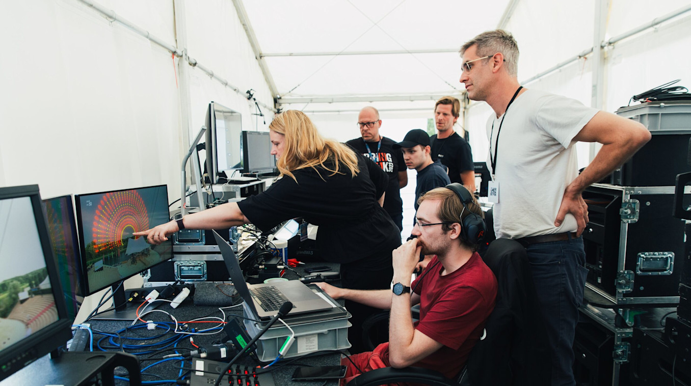 LUPIXX began by intuitively previsualising the event’s material in Notch, sending ideas back and forth with the client and adjusting as necessary. With access to industry-standard stadium broadcast technology, the creative team mechanically tracked a Spidercam setup and MovieBird crane, using stYpe and TrackMen systems to ensure their effects were aligned with the live camera and ready for the truck to mix into the live show.
