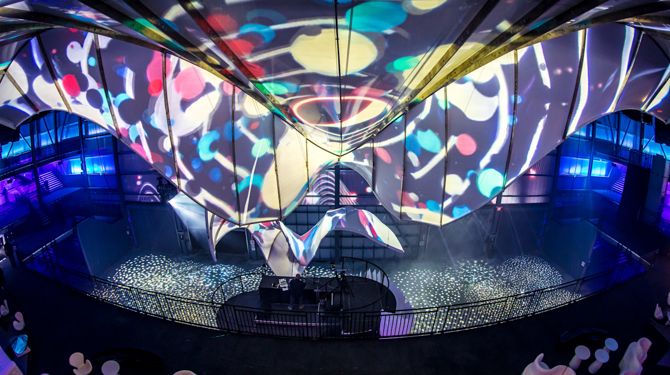 All of the visuals would be audio-reactive and respond to what the DJ was playing. These reactive elements, combined with the unique and varying surfaces at the venue, required design decisions to be made on site. With less than 12 hours on-site before each event, MEPTIK needed optimal flexibility and efficiency to make changes across multiple surfaces. Their Notch workflow provided the opportunity to fine-tune the interactive aspects of the content, and to iterate and make changes quickly. The events were a sensory success. MEPTIK’s immersive multi-screen production cultivated an environment where the music, visuals and atmosphere were reflective of and enhanced the overall experience.
