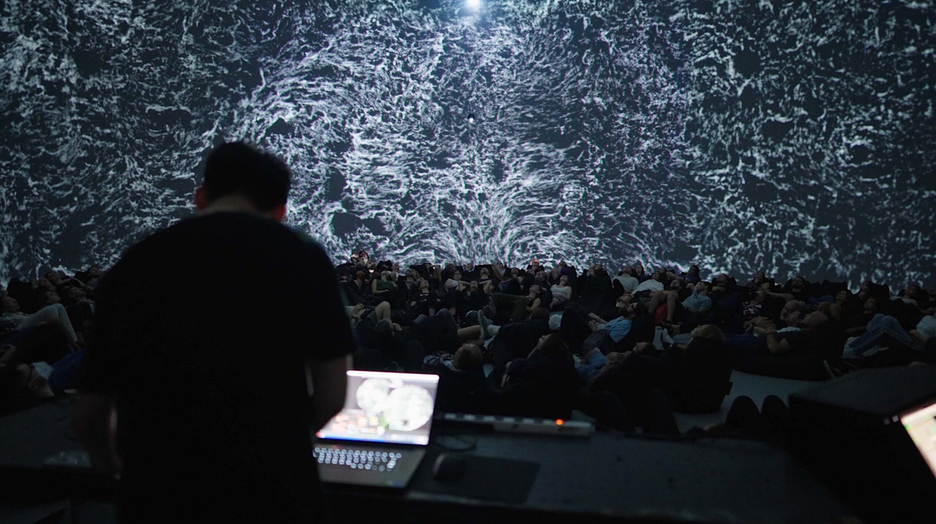 In Summer 2022, Visual Artist CLAUDE and Sound Artist Shin Hyejin debuted their new show, “Trial,” produced through the Society for Arts and Technology Residency Programme, at MUTEK Montreal. For the project, their first dome projection performance, the artists put universal negative emotions, such as fear and stress, through a personal filter within an abstract audiovisual environment.
