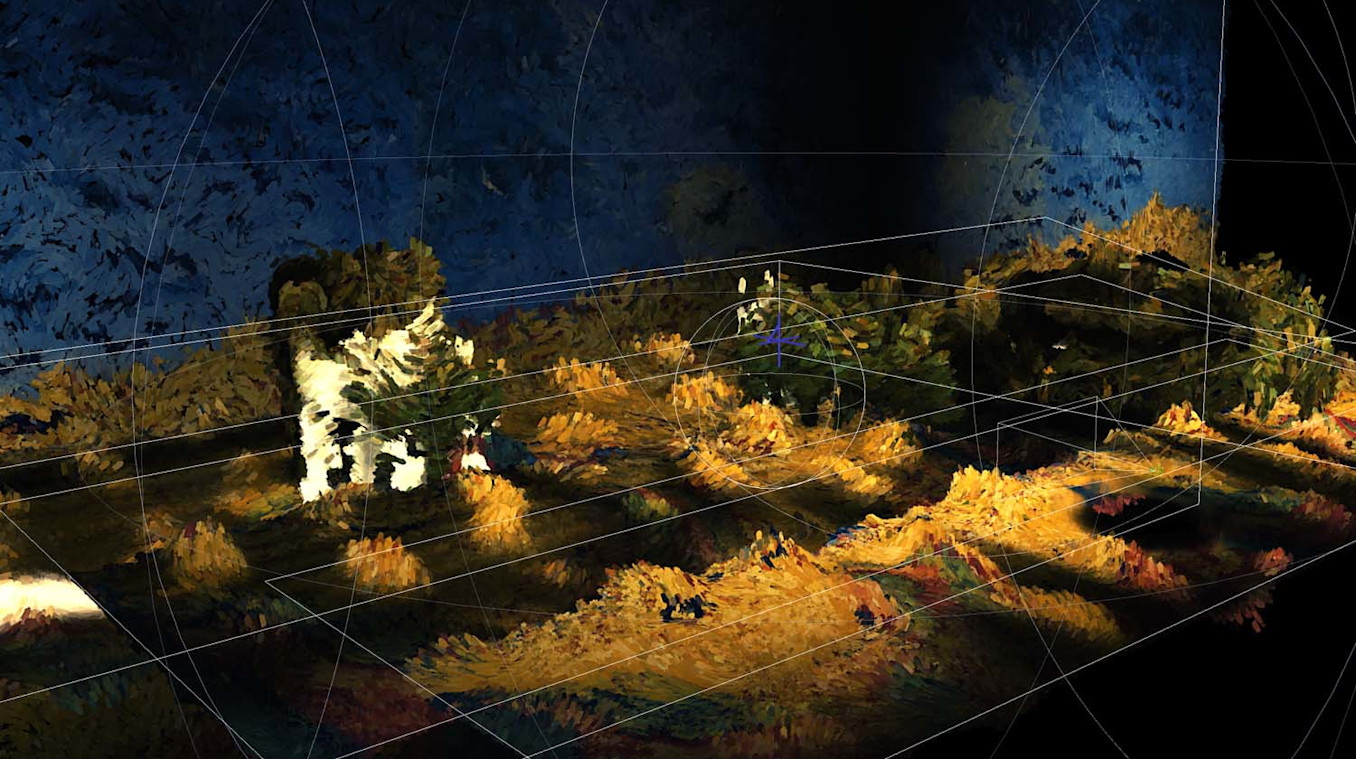 In their beginning conversations, the Nohlab team and Le Guillou used a few famous pieces, such as Wheatfields with Crows and Starry Night, as a starting point. The Notch artist tried to translate the motion of these landscapes and the sensations they evoke into a digitally processed scene, emphasising depth.