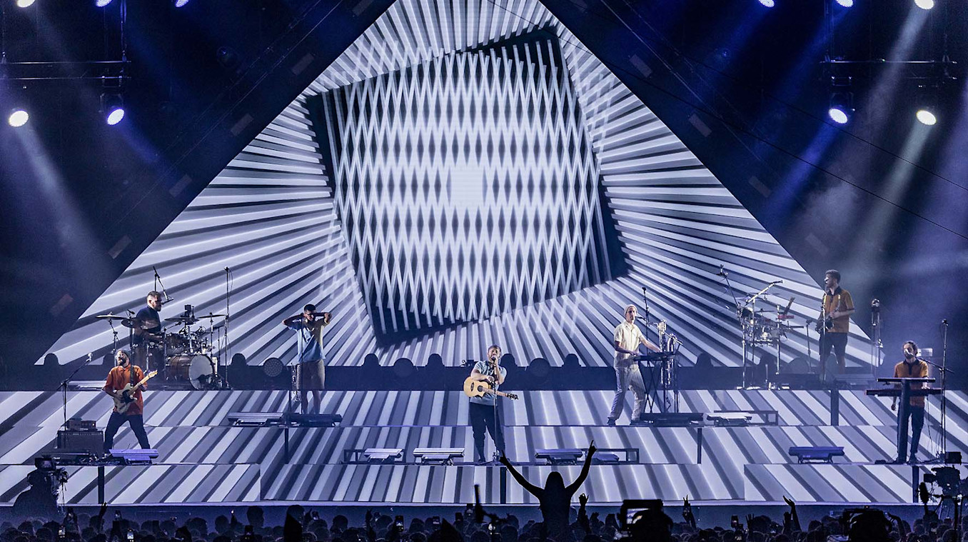 The creative team aimed to make the stage appear as deep as possible while giving a theatrical flare to the stage. The team used a triangular screen as the primary point at centre stage. Between the musicians, they used smaller LED screens to highlight and enhance certain standout moments from each band member. They mainly wanted to keep things multifaceted, and, at different points throughout the show, they used the screens as backlights, backdrops, cycloramas, or for traditional visual effects.